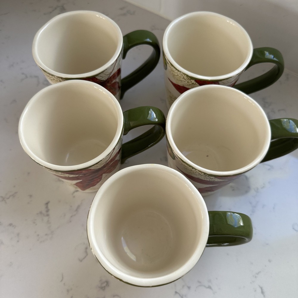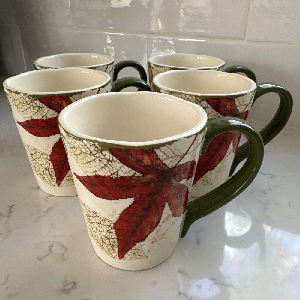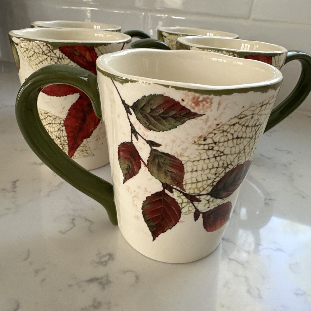 Beautiful fall leaf design mugs! Autumn decor and Thanksgiving ready! Set of 5 mugs. Dishwasher and microwave safe! Hand Painted Iron Stone...