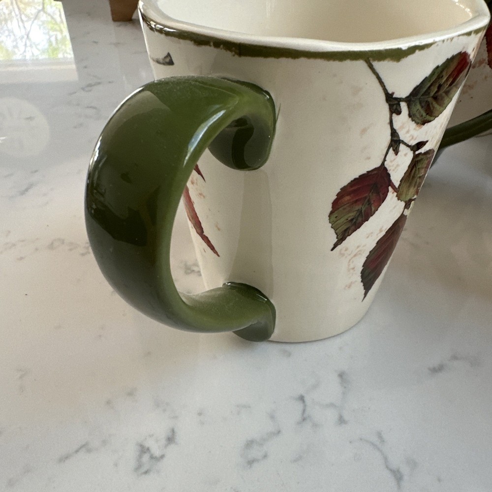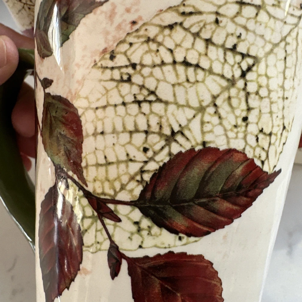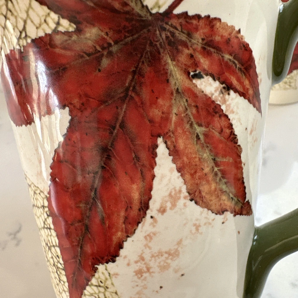 Beautiful fall leaf design mugs! Autumn decor and Thanksgiving ready! Set of 5 mugs. Dishwasher and microwave safe! Hand Painted Iron Stone