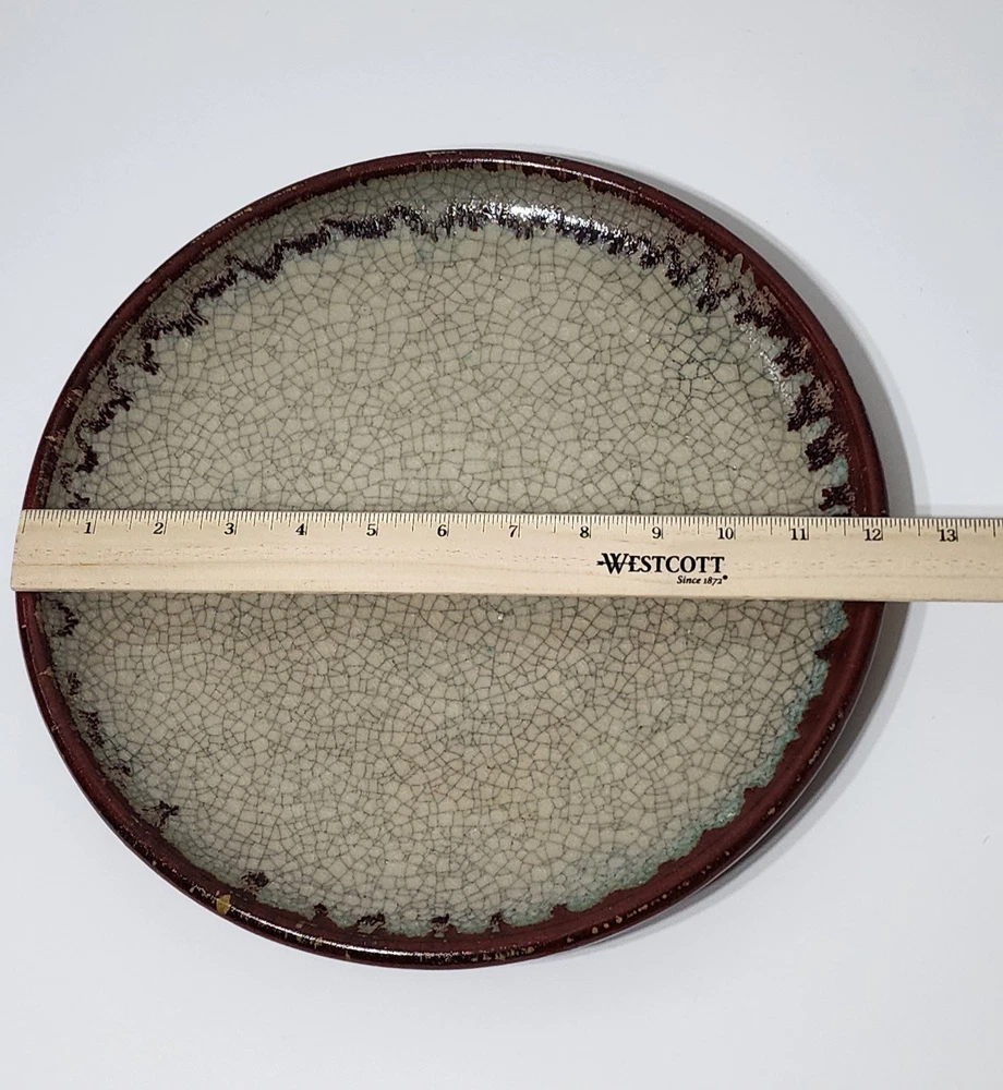Pier 1 One Imports Crackle CHOP Plate Charger Serving Platter Stoneware 12.5" NOTE: I have several of these plates listed. You will receive the plate listed and photographed in this listing. This plate is from the 90's and was part of my own personal collection. It is in great condition, hardly used. This is the larger charger style plates and are rust/red in color and some may describe as rust/brown. They are meant to look rustic with the crackling. Each plate is unique. This one has a hint of blue in it. Please see pictures. Plate is HEAVY and weighs 3 lbs. Please choose the best shipping option. I am offering UPS and USPS Ground Advantage. Plates measures approximately 12.5" across. Thank you for viewing. All orders are packaged with care. If you have any questions, please feel free to message me. Smallworld101