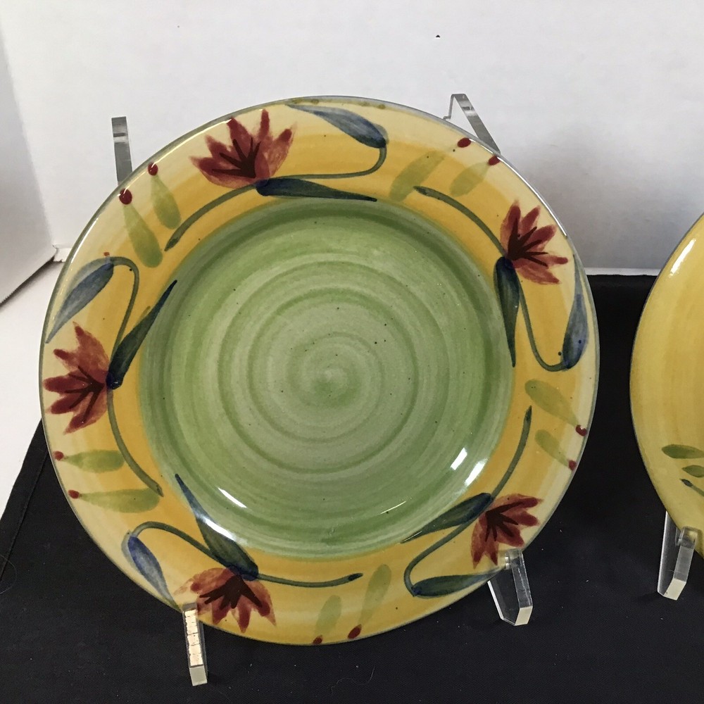 Up for your consideration is this pair of Pier 1 Elizabeth 8” Salad/ bread Plates in Green/Yellow and Floral Swirled. Plates are in excellent condition. No chips, cracks or crazing. Plates were used very little and have no utensil marks. Plates are packaged and ready to mail today or the next business morning. FCE- As with all my listings, if you are not satisfied with your purchase or my described condition, please take advantage of my return policy. Thanks for checking us out! Please view all photos posted as they are part of the item description and be sure and message us with any questions or BEST OFFERS that you might have! We are adding items daily so if you like what you see here check out our other Unique & Rare Treasured items. Since 1998 our eBay Stores are named “StandupSkier” and “Mayjune”