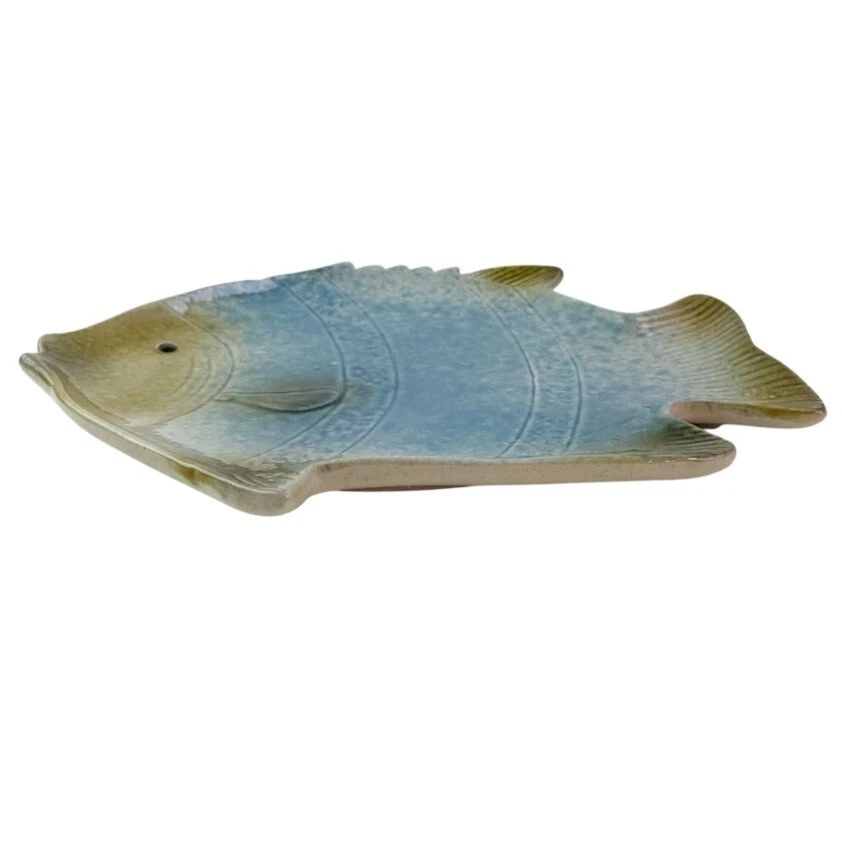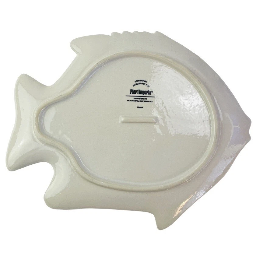 Pier 1 One Imports Fish Shaped Serving Plate Dish Tray Stoneware Blue Island 9.5" Condition: This is a beautiful fish-shaped dish by Pier 1 Imports. It is a discontinued piece and I believe it dates to the 1990s. It is a fat fish with a blue and green glaze. It is made of stoneware. It makes an adorable serving tray or decorative plate. Or it can finish off your collection of fish plates. It measures 9.5" long x 8" wide x 0.75" tall. It weighs 1 lb 5 oz. It is in excellent condition with no chips, cracks, or crazing. Please see the photos for specifics on the condition of this island-friendly fish plate. Measurements: 9.5" long x 8" wide x 0.75" tall Weighs 1 lb 5 oz Set of one (1) ***All measurements are approximate*** International Buyers - Please Note: Import duties, taxes, and charges are not included in the item price or shipping cost. These charges are the buyer’s responsibility. Please check with your country's customs office to determine what these additional costs will be prior to bidding or buying.
