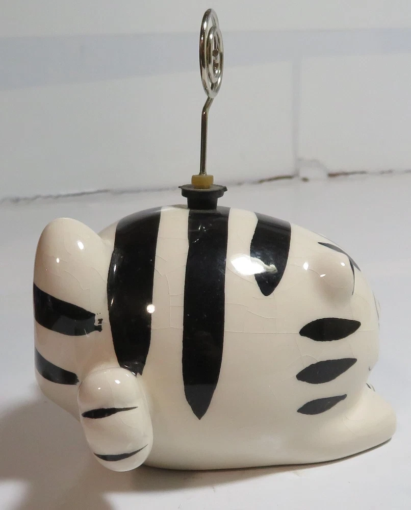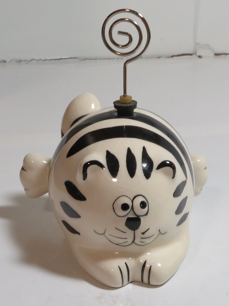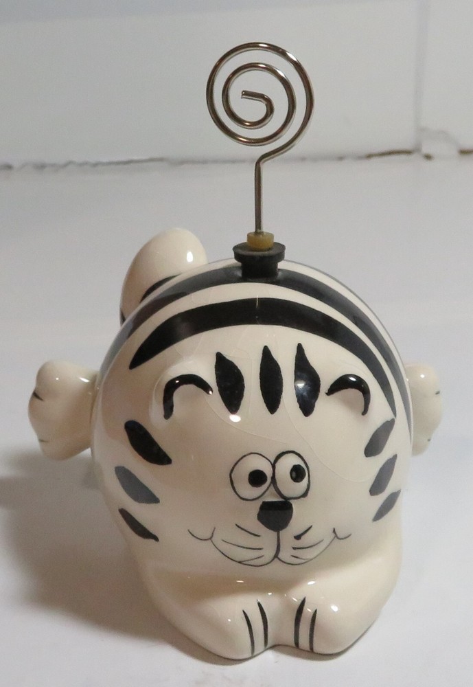 Pier 1 One Imports Long Cat Folk Art Photo Picture Recipe Card Note Holder Used. See pics, good to great used condition. I have many others and gladly combo ship. 4" tall with heavy crazing. RARE!