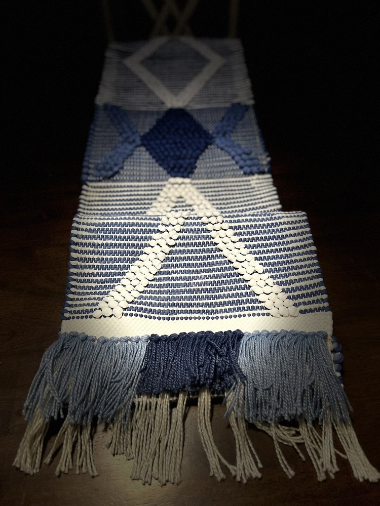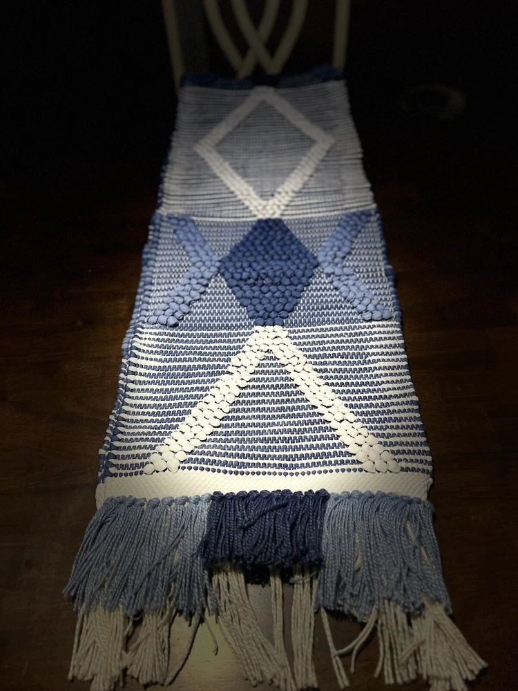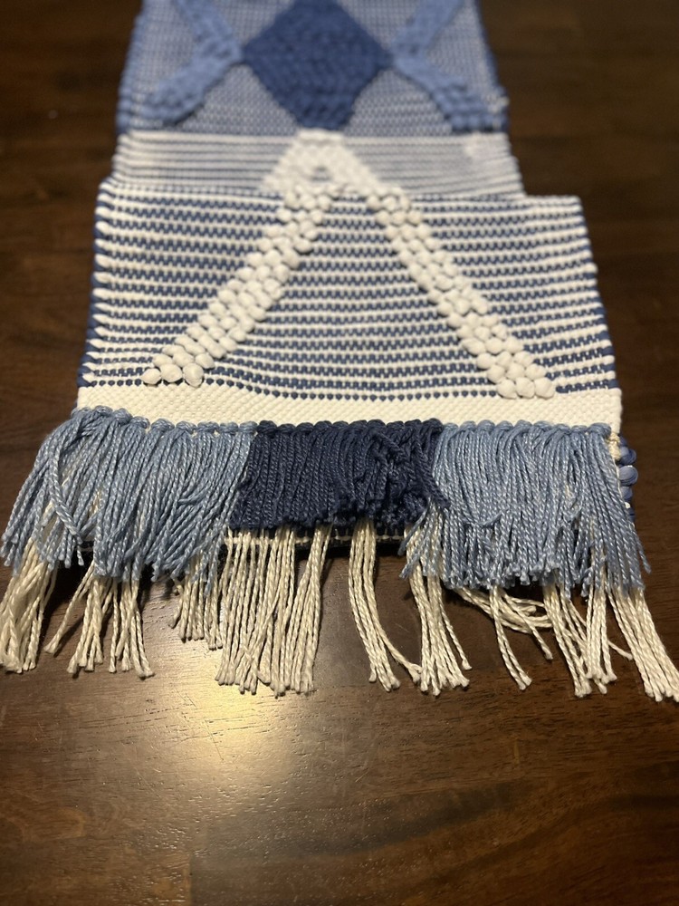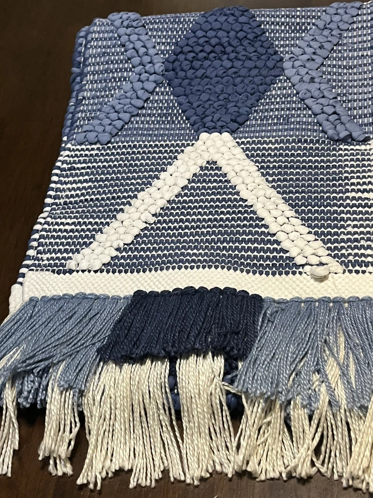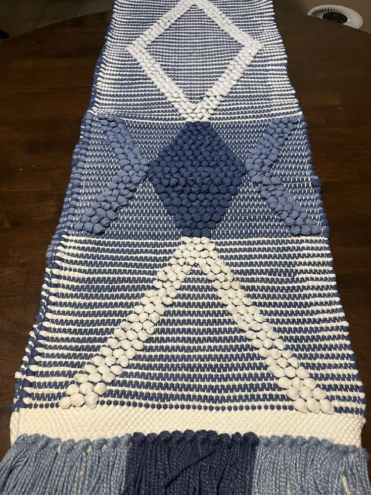 Beautiful Boho Pier 1 table runner Cool woven design and fringe Never used 13x72