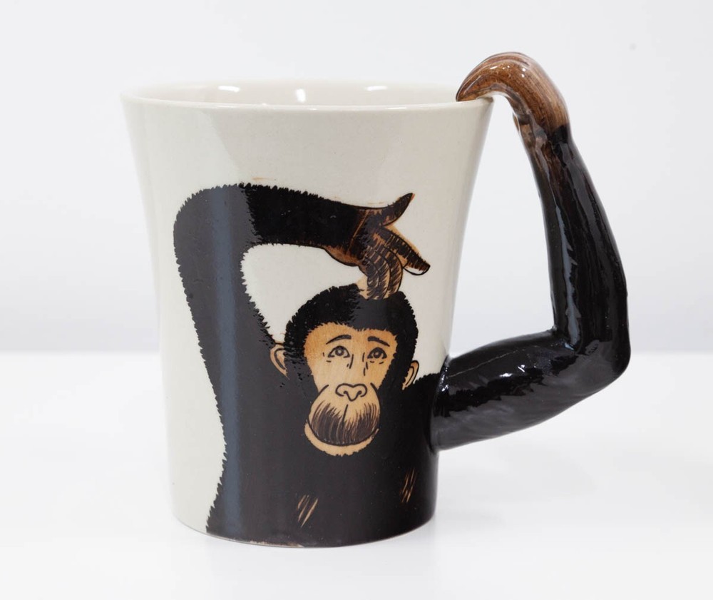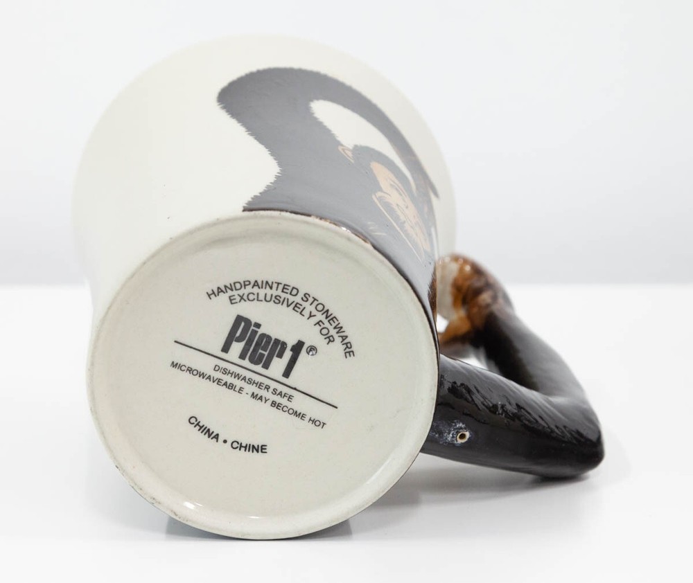This listing is for a used, but in great condition Pier 1 One Imports Monkey/Chimpanzee Coffee/Tea Mug. It measures 4" x 4" x 4.75" not including the handle.