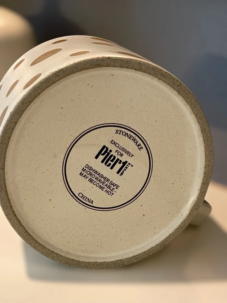 Pier 1 One Imports Polka Dot Stoneware Mug Taupe and Cream Replacement Piece No Chips, Cracks, stains or Pottery Flaws Please take a moment to look through all the pictures to make sure you're happy with the product before purchasing. Since the items are photographed in different lighting, some may have reflections or varying brightness. I always try to include images of any flaws, if there are any, to be as transparent as possible. As I’m new to selling, I really appreciate your support and I’m working hard to build a great relationship with my buyers. If you have any questions or suggestions, please don’t hesitate to reach out—I’m here to help! Be sure to check out and follow my eBay store, DUNNSDEN , where I’m adding new items daily! Shipping Info: I don’t charge extra for shipping—it’s just the cost I pay. I take care to package everything securely so it arrives in perfect condition. I try to keep the item price as low as possible by using calculated or flat-rate shipping, instead of adding shipping costs to the price of the item. If you'd like a different shipping method, feel free to message me before purchasing, and I’ll be happy to accommodate. I’m also happy to combine shipping whenever possible to save you money! Thanks so much for considering my shop!