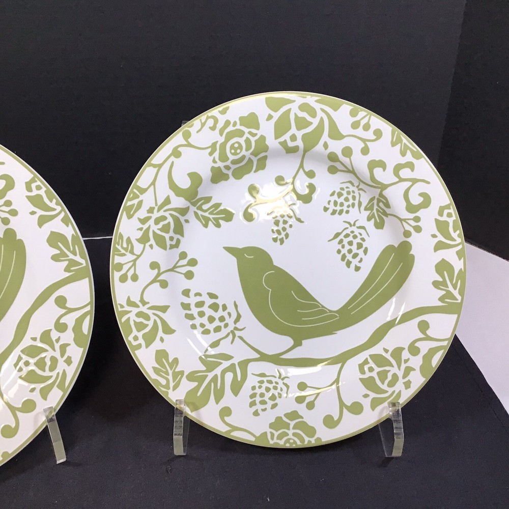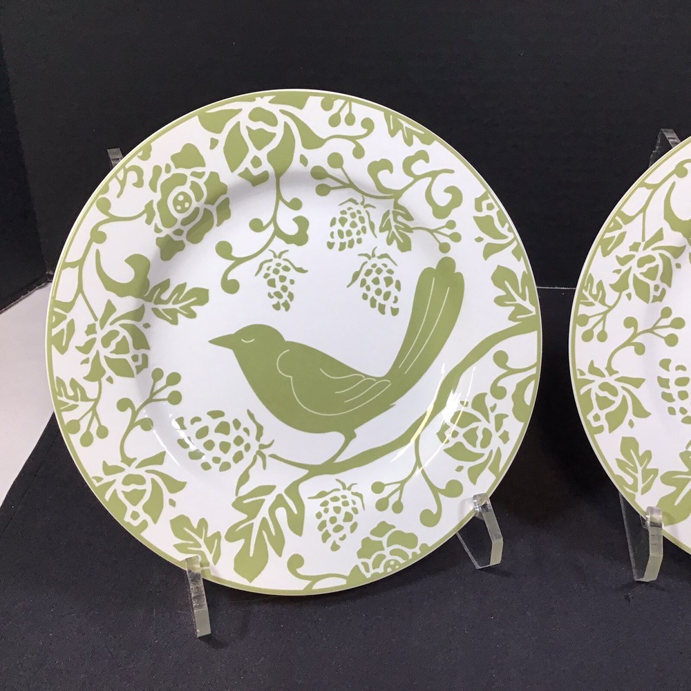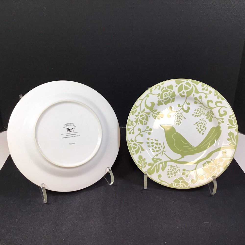 Up for your consideration is this pair of Pier 1 One Imports Stoneware Embossed Green Bird Salad /Dessert Plates. Measure 8.25”. Print is embossed on each plate. Plates are in like new condition. No stains or crazing. As with all my listings if you’re not satisfied with my described condition, please take advantage of my return policy. Plates are packaged and ready to mail today or the next business morning. Thanks for looking at my listing.