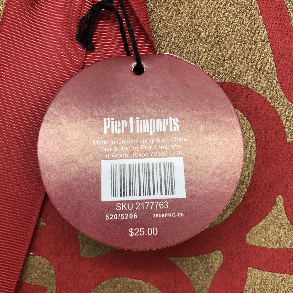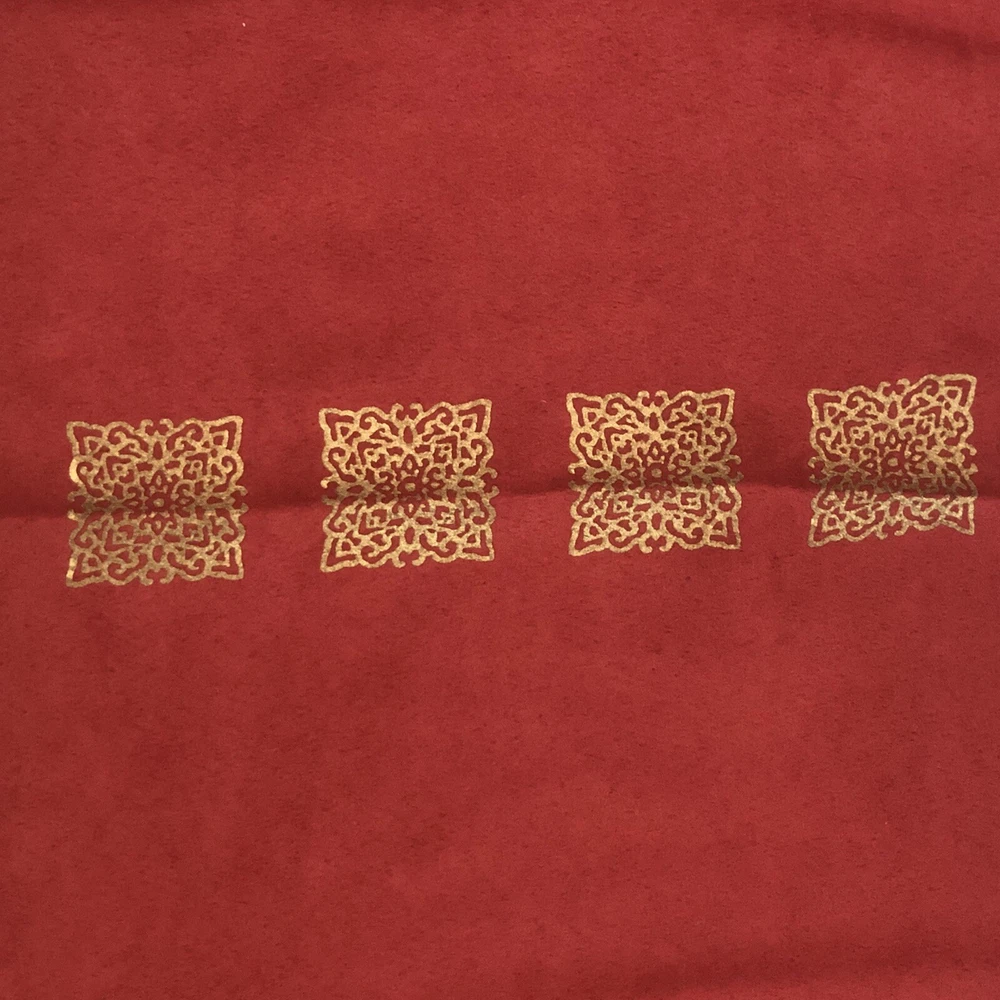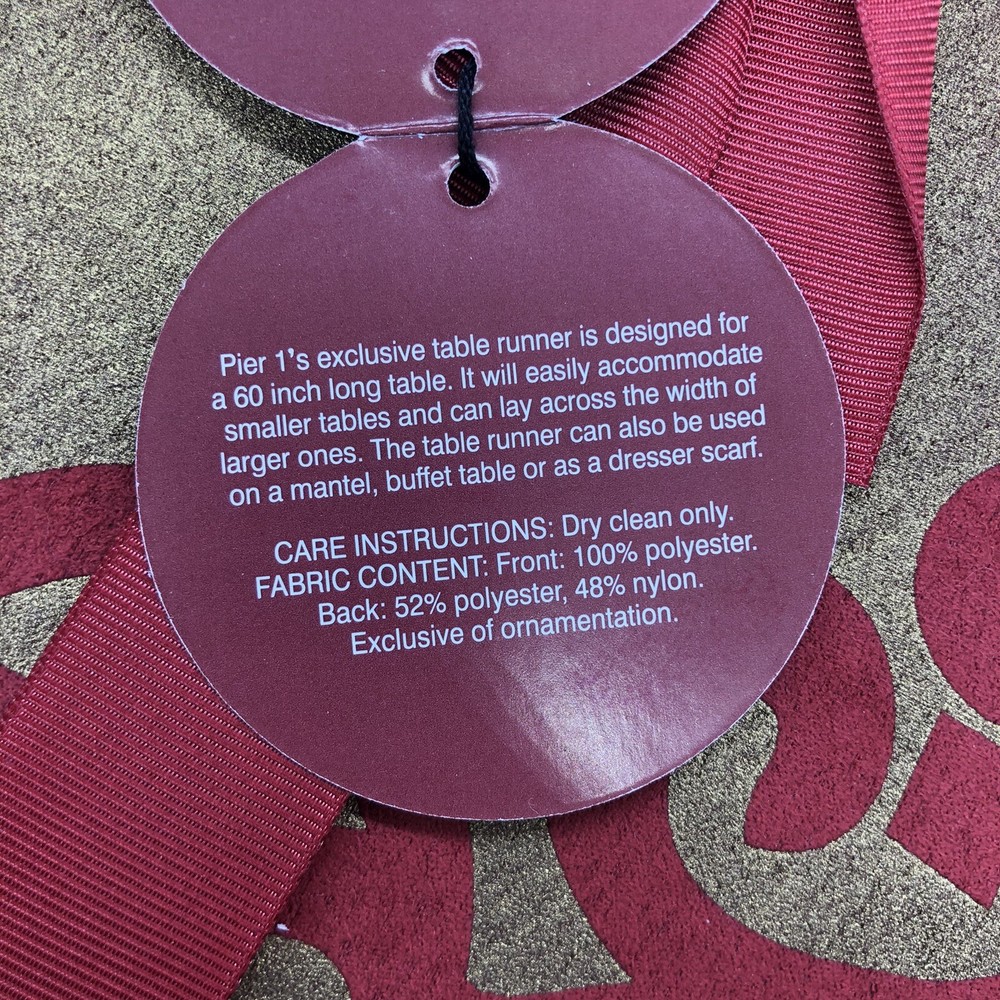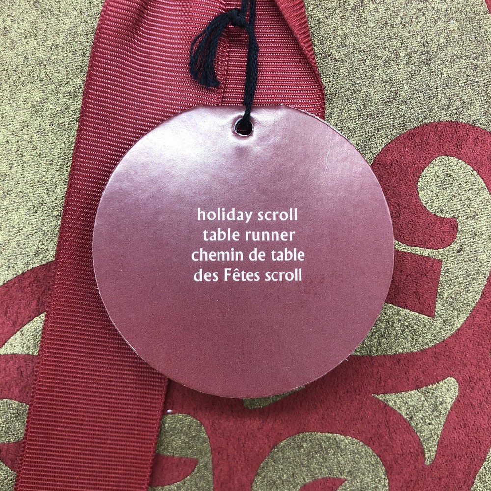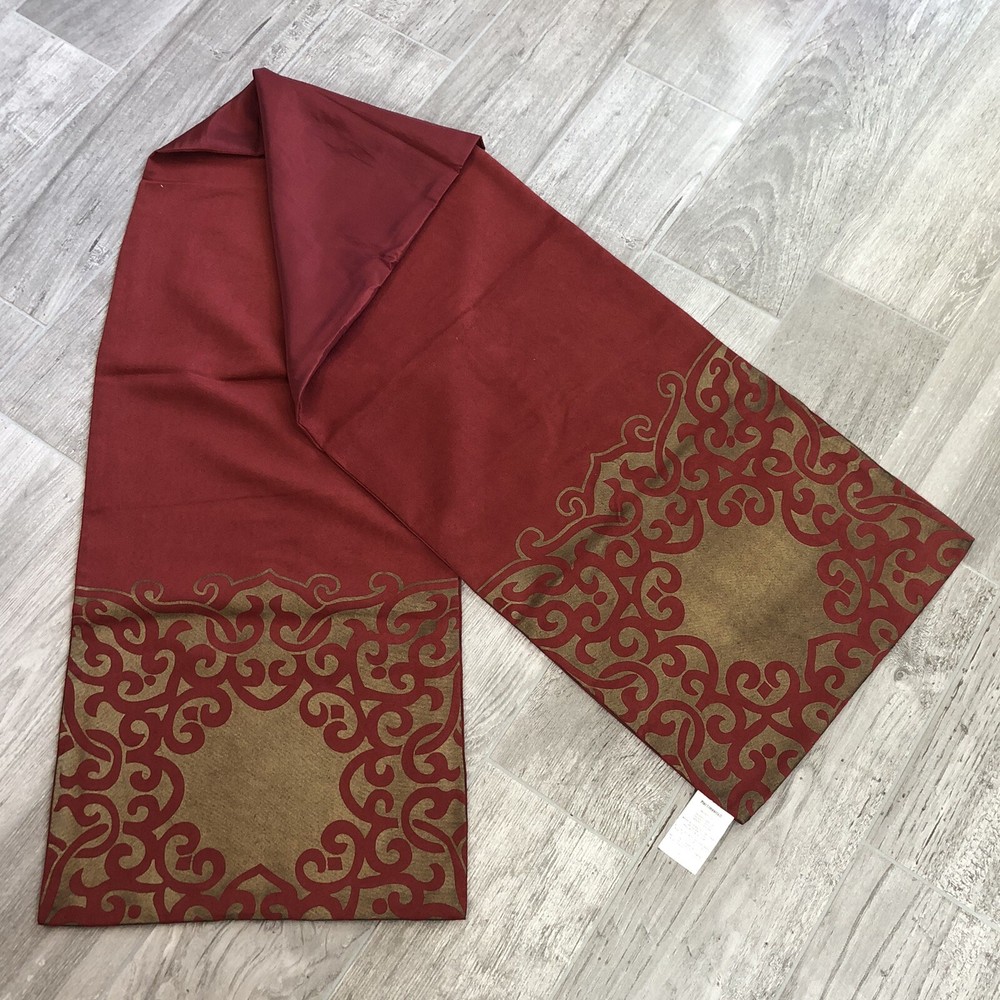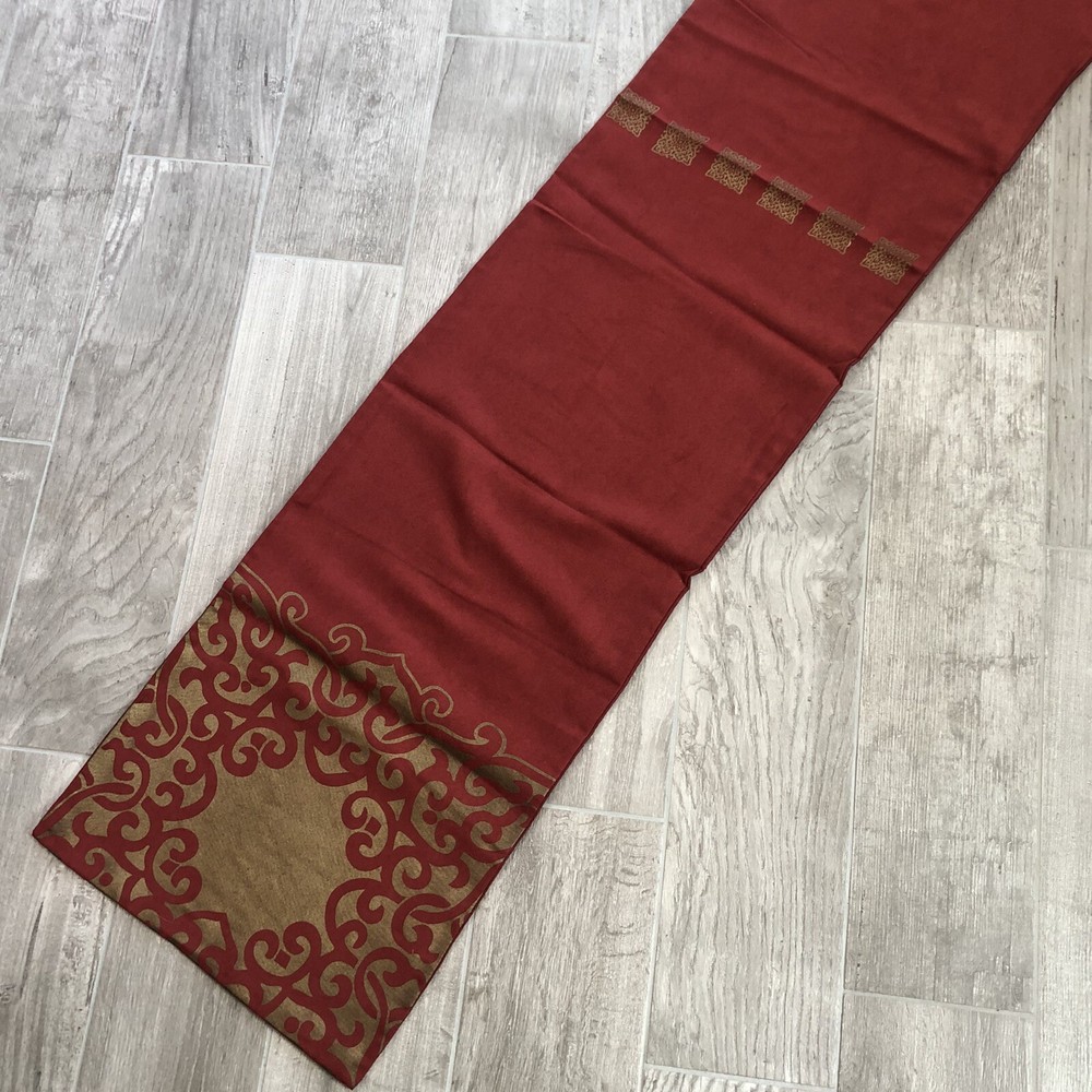 Pier 1 One Imports Table Runner Holiday Scroll Warm Red & Warm Gold 14" x 72" Took out of the packaging for pictures Smoke Free Home Pictures are of the actual items being sold. If you have any questions feel free to ask I ship everyday Monday-Friday I ship with care I will combine shipping of items in my store when possible Just let me know