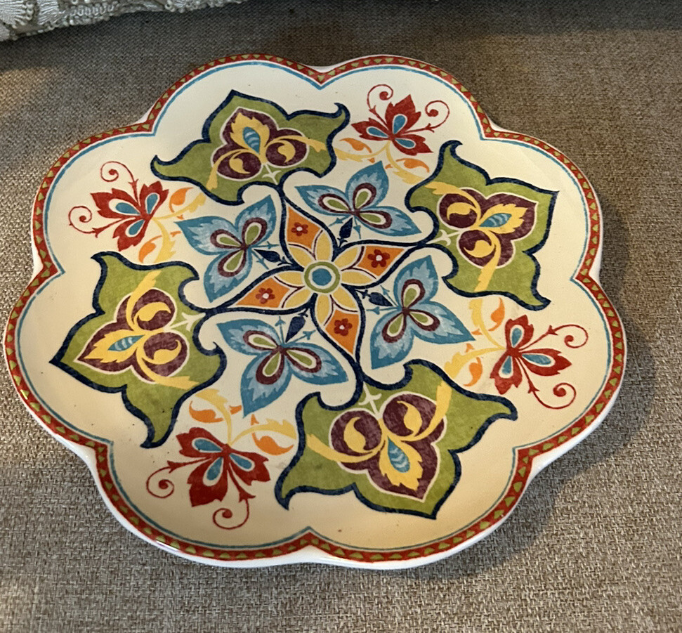 ~~~~ Ironstone Salad/Luncheon Plate ~~~~ measures: 9" across from Pier 1 in the Tapestry pattern. Back-stamped as described. Made in China CONDITION: Used pieces in very good condition. No chips or cracks. *** Please click here for more in this pattern! *** ***Please note that we do combine shipping costs! After making your purchases please give us a chance to make the adjustment. Thank you.*** Powered by eBay Turbo Lister The free listing tool. List your items fast and easy and manage your active items.
