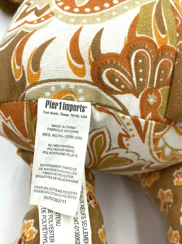 Brand: Pier 1 Imports Size: Approx. 15.5" long when lying flat Description: Orange, tan and white paisley and floral pattern teddy bear plush with 'furry' tummy and paws. Condition: Overall wear is mild and there are no rips, stains, or any other problems that I can see. BLB2 INTERNATIONAL BUYERS - Import duties, fees, taxes etc. are not included in the item price or shipping charges. These charges are the buyer's responsibility. If you have questions about these fees please check with your country’s customs office to determine what these additional costs will be prior to bidding/buying.