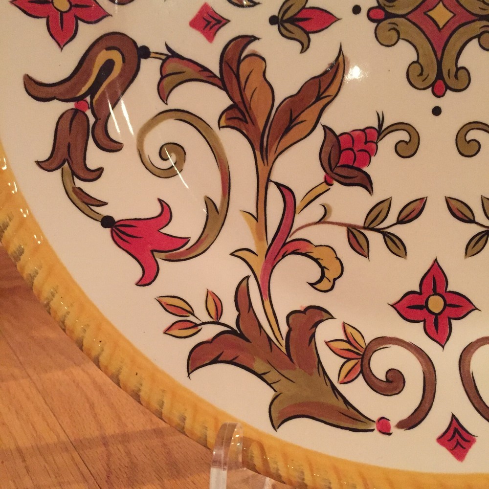Thank you so much for the careful packaging and prompt shipping of this delightful sun platter. It arrived in perfect condition. It’s a bright & cheerful addition to my kitchen. Your quick response and meticulous packaging is very much appreciated!! This piece arrived just as described and was offered for a very fair price.