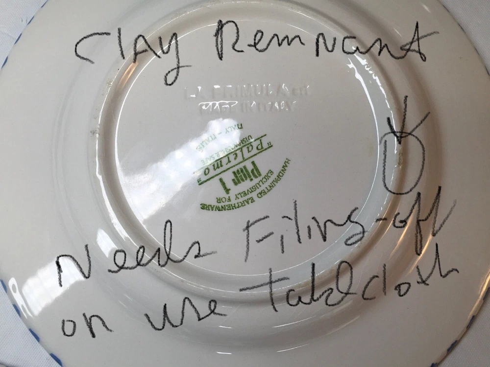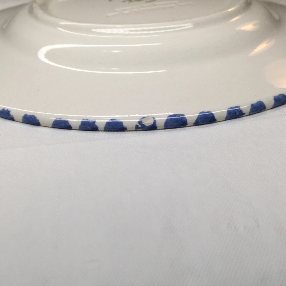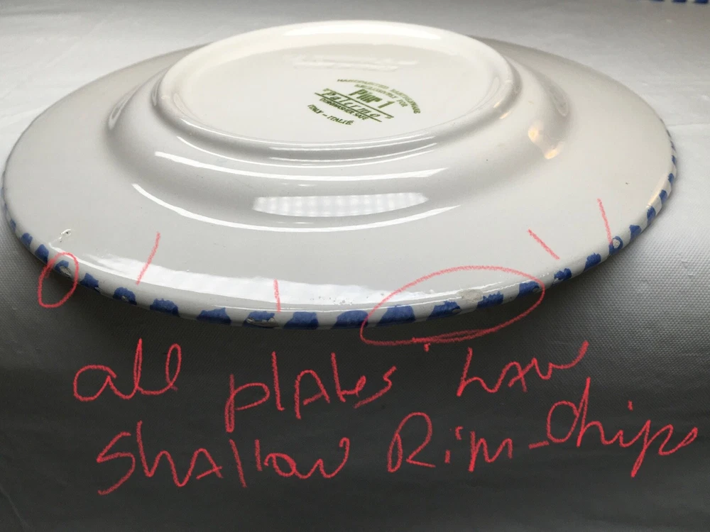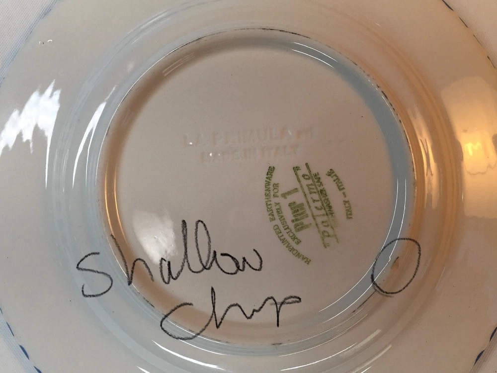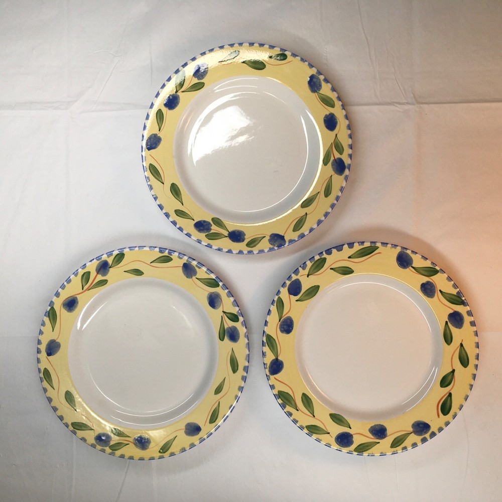 | Features | Decorative, blue olives on yellow band trim., Pier 1 Palermo made by La Primula Italian Pottery Company., discontinued and hard to find |