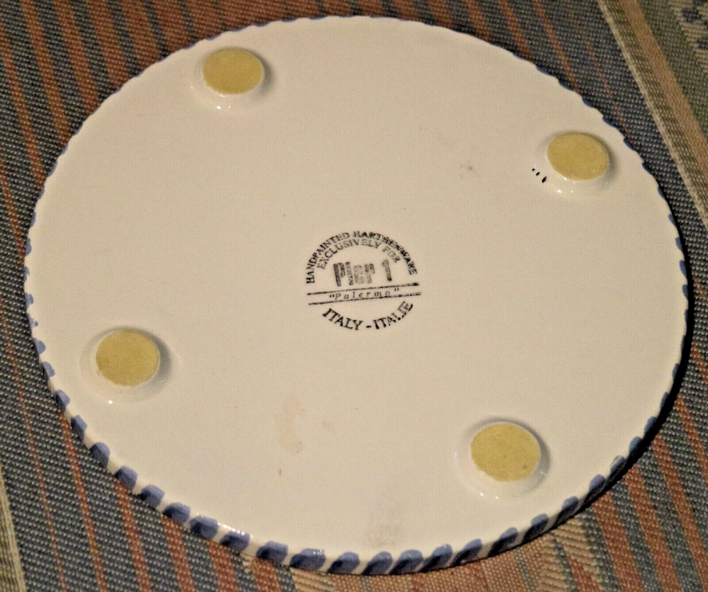 Beautiful pattern from Pier 1 discontinued in 2002...Palermo. Here's the Trivet, Hot Plate or tea tile. Approx 8" in diameter. Made In Italy. In excellent used condition with no chips, cracks or crazing. Please see photos to confirm condition. E300