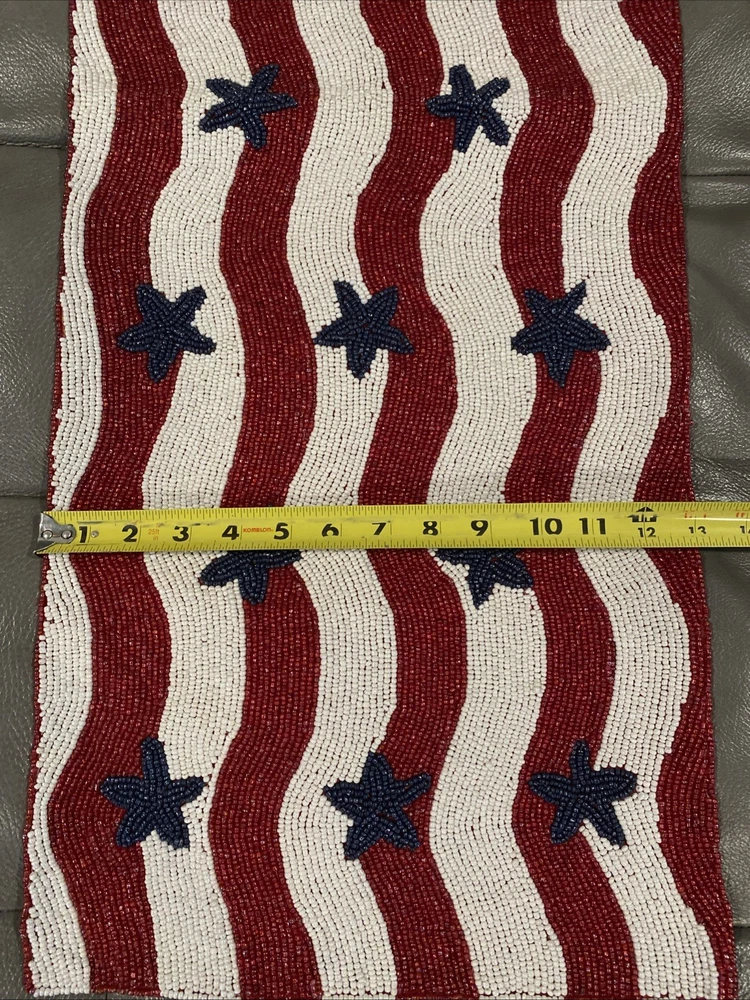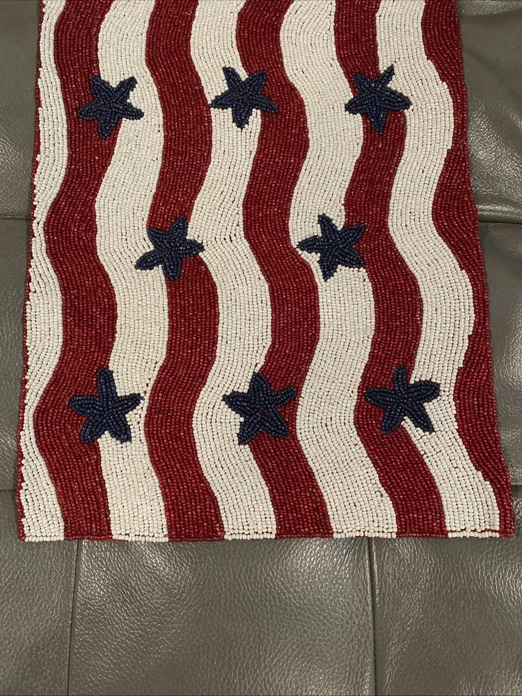 Pier 1 Imports Patriotic Hand Beaded Table Runner 36”x13” Stars & Stripes USA, in really good condition, with original sticker. Please check all the photos for details as they are part of the descript...