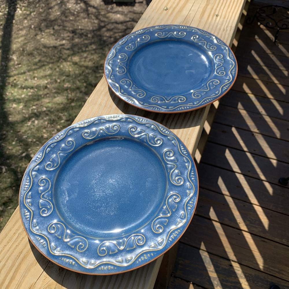 You are bidding on 2 PIER 1 salad plates from the TUNISIAN pattern. They measure 8 1/2” in diameter and are in unused condition as they were hanging on a wall.