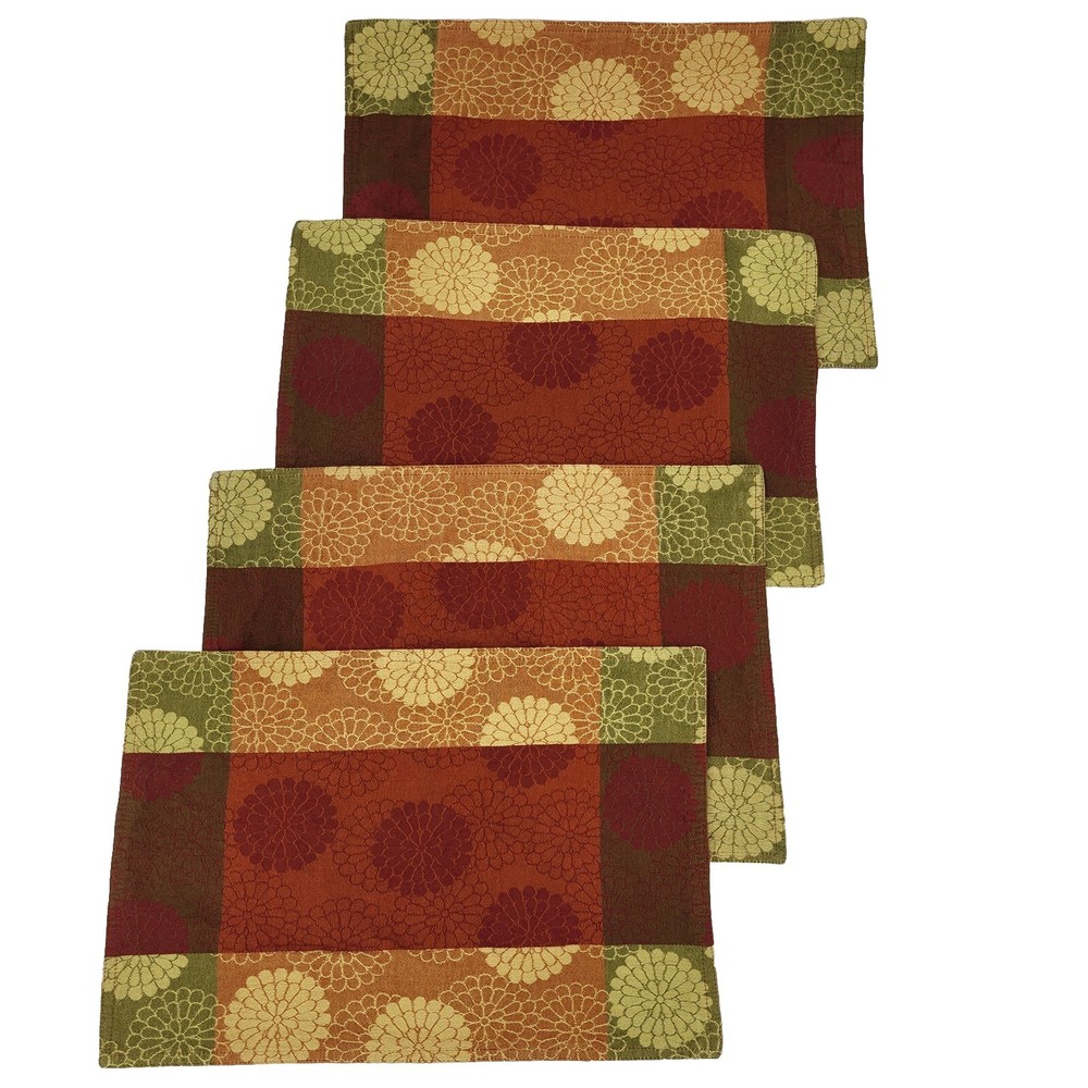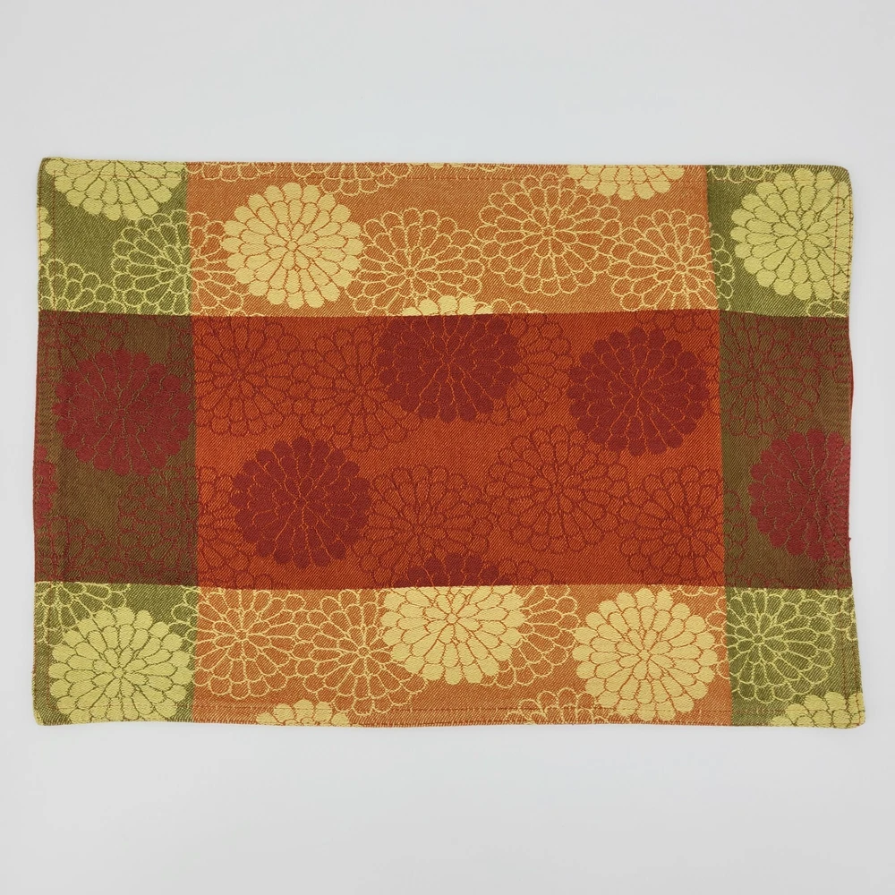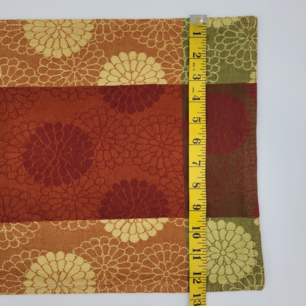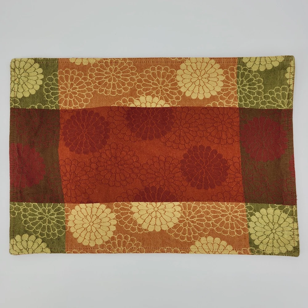 These Pier 1 Placemats are a Set of 4 and are in pre-loved condition. It's a Set of 4 Pier 1 Jacquard Peonies Plaemats in red, green, yellow, and orange with solid red back. Machine washable and measure 13"x19" Feel free to ask questions and please see the pictures for details and measurements. Pre-loved condition these Placemats have been used and washed. Some signs of use. Tiny stain and top stitching flaw on one placemat. Noted in pictures. See Pictures! I do not accept returns. Please use measurements, description and pictures for determining size and condition prior to purchasing. Will ship folded in a polymailer. Thanks!