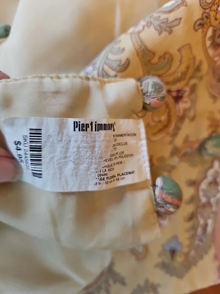 This is for a set of 9 Pier 1 100% cotton placemats. They are in good pre-owned condition and measure approximately 12.5'' x 18''. These retailed for $4.95 each.