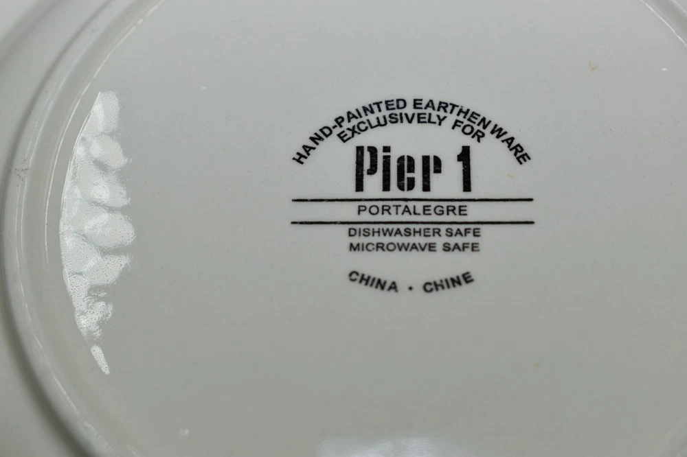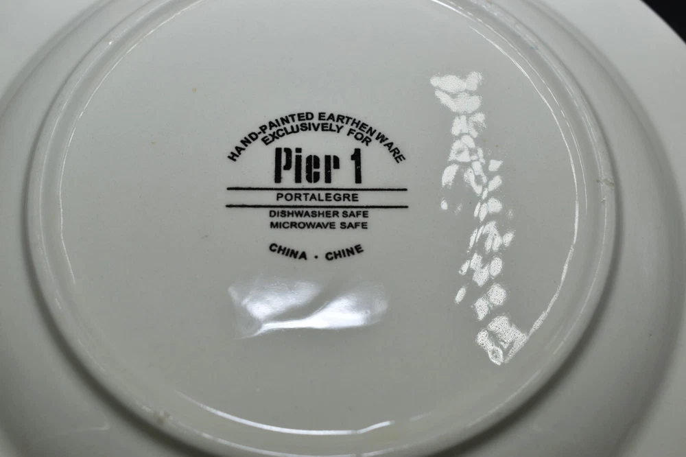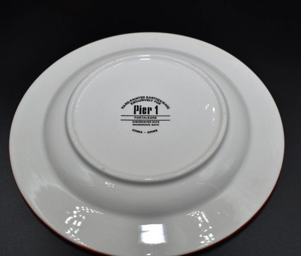 PLEASE READ ALL INFORMATION BELOW ITEM DESCRIPTION: PIER 1 PORTALEGRE SET IF TWO SALAD PLATES IN NICE PREOWNED VINTAGE CONDITION. I DONT SEE ANY CHIPS OR CRACKS, BUT ONE OF THE PLATES HAS SOME NATURAL CRAZING AS SEEN IN THE PHOTOS. USE THE ZOOM FEATURE IF NEEDED. FAST SHIPPING. PHOTOS: PLEASE SEE ALL PHOTOS AS THEY ARE PART OF MY ITEMS DESCRIPTION. I DO MY BEST TO POINT OUT ANY FLAWS THAT I SEE, HOWEVER I MAY MISS SOMETHING SO I TAKE A LOT OF PHOTOS, PLEASE USE THE ZOOM OPTION ON THE PHOTOS. PLEASE USE THE PHOTOS TO SEE THE CONDITION AND THE SIZE OF THE ITEM. SHIPPING: 10.50 US SHIPPING INTERNATIONAL BUYERS PAY THROUGH THE EBAY INTERNATIONAL SHIPPING. WITH THE RISE IN SHIPPING CHARGES I OFFER MOST ITEMS WITH THE NEW USPS GROUND ADVANTAGE WHICH IS ALMOST AS QUICK AS PRIORITY, DEPENDING ON YOUR LOCATION, MANY OF THE ITEMS MARKED USPS GROUND ADVANTAGE WILL ACTUALLY SHIP PRIORITY. I DO RECYCLE AS MUCH PACKING MATERIALS AND BOXES AS I CAN. FAST SECURE PACKAGING AND SHIPPING. SHIPPING DISCOUNTS: IF YOU ARE PURCHASING MORE THAN ONE ITEM, PLEASE WAIT TO BE INVOICED TO PAY SO I CAN SEND AN UPDATED INVOICE WITH DISCOUNTED SHIPPING RATES. IF ITEMS ARE PAID BEFORE THE INVOICE IS SENT I CAN'T GO BACK AND CHANGE THE CHARGES. I DO NOT HAVE COMBINED SHIPPING ATTACHED TO MY ACCOUNT, SO ADDING THEM TO A CART WILL NOT WORK AND DOES NOT ALERT ME OF YOUR ITEMS. THE WAY TO PURCHASE ARE AS FOLLOWS: I DONT REQUIRE IMMEDIATE PAYMENT SO YOU NEED TO BUY IT NOW FOR EACH ITEM, DO NOT PAY, ADD YOUR NEXT ITEM.ONCE YOU ARE DONE, I WILL ADJUST THE INVOICE. WITH VINTAGE ITEMS, THEY MAY SHOWS SIGNS OF WEAR NORMAL WITH THEIR AGE, I WILL BE SURE TO LIST ANY MAJOR BLEMISHES I SEE. WITH GLASSWARE AND DISHES, THERE MAY BE LIGHT SCRATCHES FROM BEING STACKED IN THE CABINET OR FROM BEING HANDELED FROM NORMAL WEAR, MOST OF THE TIME I SEE THEM BUT I AM PARTICULAR. I TAKE LOTS OF PHOTOS FROM ALL ANGLES TO HELP SHOW THE CONDITION OF MY ITEMS. VINTAGE AND ANTIQUE ITEMS: MANY OF MY ITEMS ARE VINTAGE FOUND AT ESTATE SALES AND ANTIQUE SHOPS. I DO MY BEST TO CLEAN THE ITEMS BEFORE LISTING. IF THEY ARE FABRIC ITEMS I DO MY BEST TO AIR THEM OUT AS MANY VINTAGE ITEMS HAVE BEEN IN OLD HOMES THAT COULD HAVE SMELLS. VINTAGE ITEMS MAY NEED TLC/CLEANING AGAIN ONCE THEY ARRIVE TO THEIR NEW HOME. I DO MY BEST TO LIST ANY ISSUES THAT I NOTICE, BUT FEEL FREE TO ASK ANY QUESTIONS PRIOR TO PURCHASING VINTAGE ITEMS AS THEY ARE SOLD AS IS AND ARE FINAL SALES. ALL OF MY ITEMS COME FROM A SMOKE FREE, PET FRIENDLY HOME. I TAKE PRIDE IN PACKAGING WELL AND FAST SHIPPING. I STRIVE FOR A FIVE STAR RATING. PLEASE CONTACT ME BEFORE LEAVING BAD FEEDBACK. I LEAVE FEEDBACK ONCE I RECEIVE FEEDBACK. THANKS FOR LOOKING AT MY ITEMS. ALL SALES FINAL, ITEMS ARE SOLD AS SEEN IN THE PHOTOS. PLEASE SEE ALL PHOTOS AND ASK ANY QUESTIONS BEFORE PURCHASING.