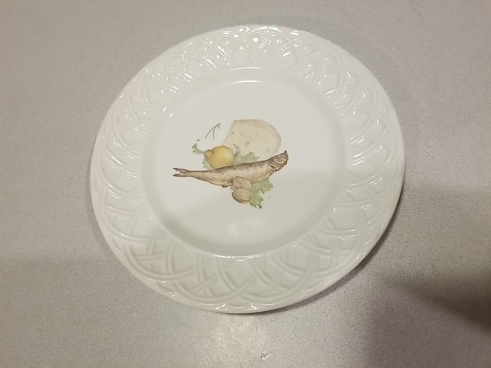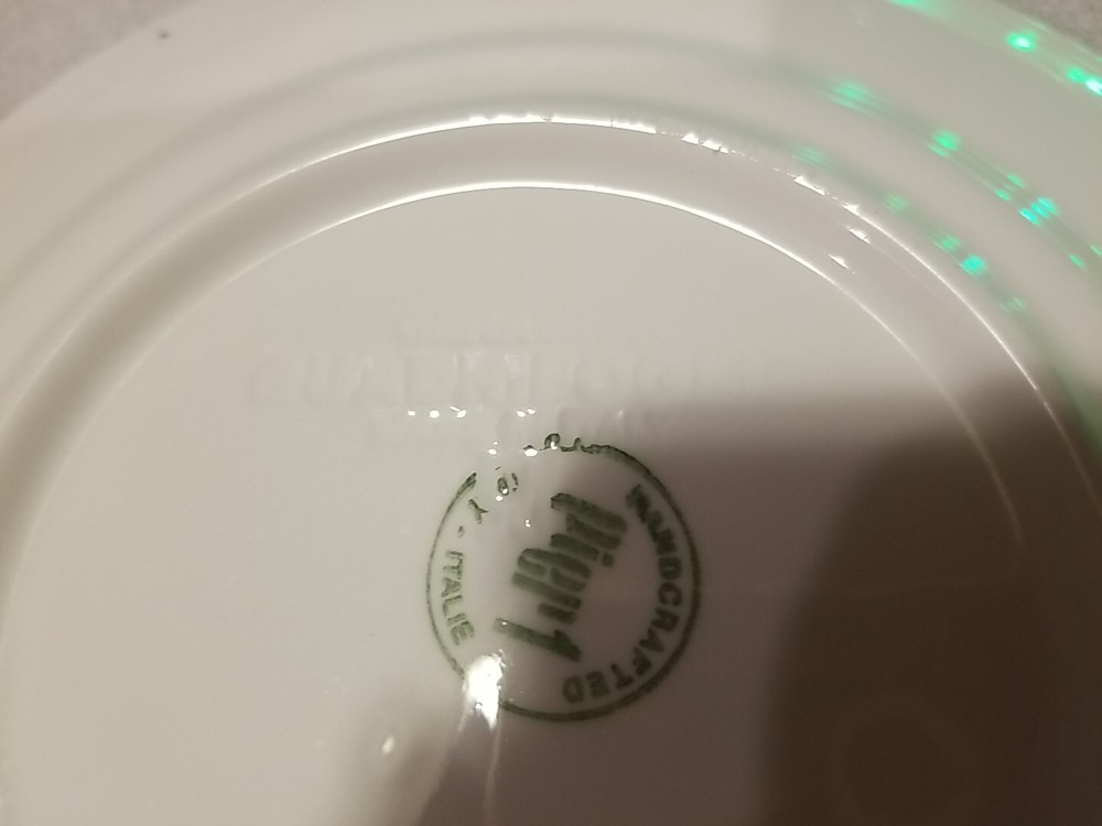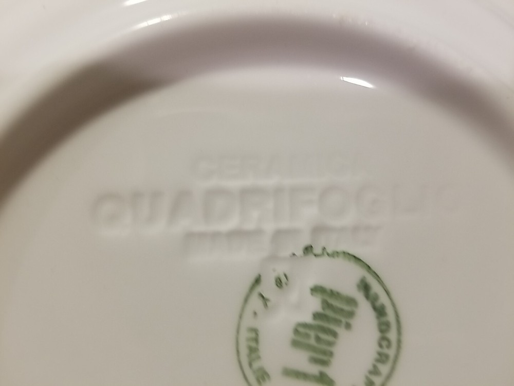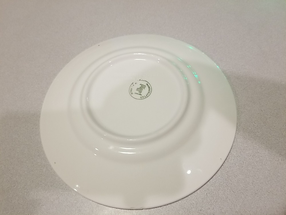 This beautiful Pier 1 Imports Quadrifoglio Salad Plate is a must-have for any collector or lover of Italian pottery. The plate features a stunning basket relief design, handcrafted with precision and care. Measuring 8.5 inches in diameter, this round plate is perfect for a variety of occasions, from casual gatherings to special events such as weddings and parties. The plate is made of high-quality ceramic and comes in a set of three, including dessert, salad, and bread plates. The backstamp is incised and the plate is an original, not a licensed reproduction. Add this unique piece to your collection today!
