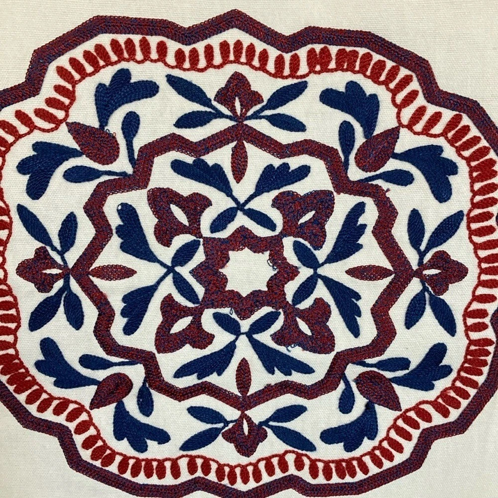 This table runner is absolutely stunning! The red, white, and blue embroidery adds a festive yet elegant touch to any table. Perfect for summer gatherings, Fourth of July, or nautical-themed decor. The quality is top-notch, and the solid middle balances the bold patterned ends beautifully. Never used and in perfect condition—such a great find!