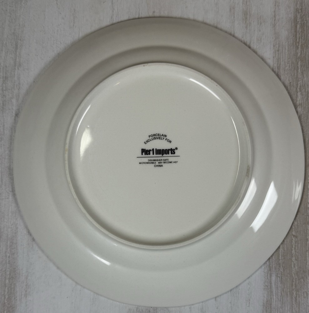 Gorgeous, rare set of two 8.5” salad plates by Porcelain for Pier 1. Excellent preowned condition. No chips/cracks. Please see photos for details. Buy with confidence. We package and ship fragile items very carefully so they arrive to you in the same condition they left us. Thanks for looking!