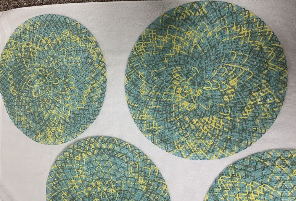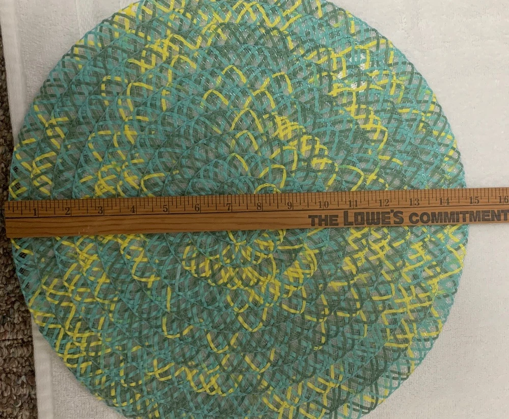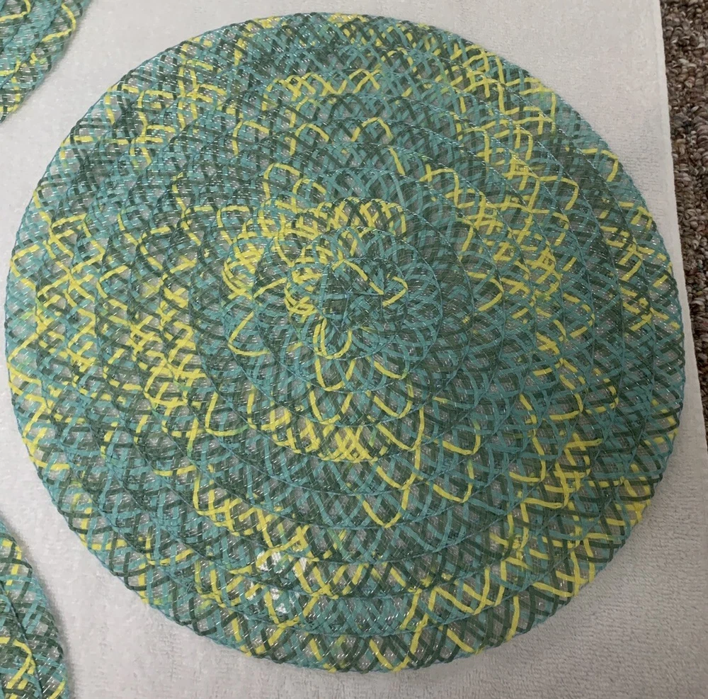 Love these vibrant, lightweight round placements! The woven polyester looks great and adds a pop of color to any table. Even though one mat is missing the tag, they’re all in excellent preowned condition—super clean and exactly as pictured. Perfect for adding a fun, boho touch to meals without being bulky. Such a steal for a set of four!