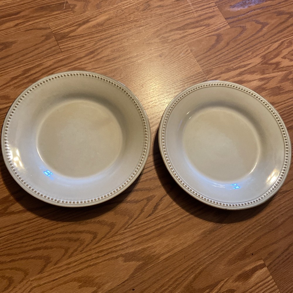 Pier 1 SPICE ROUTE SESAME Dinner Plates (2) Beaded Edg EXCELLENT COND. 10-3/4". Condition is Used. Shipped with USPS Ground Advantage....