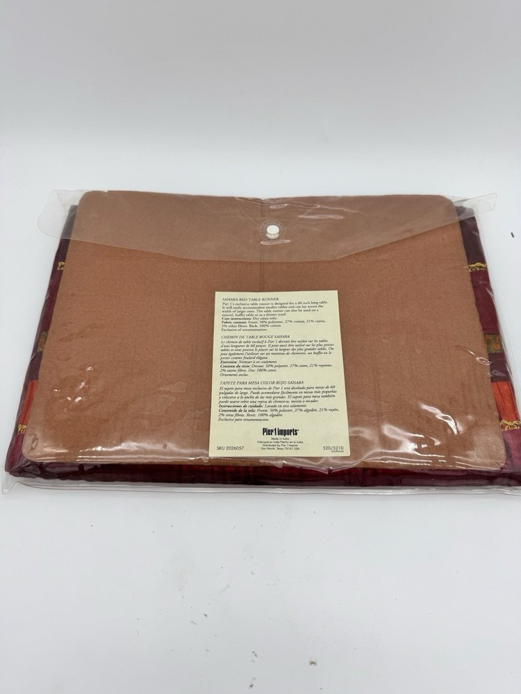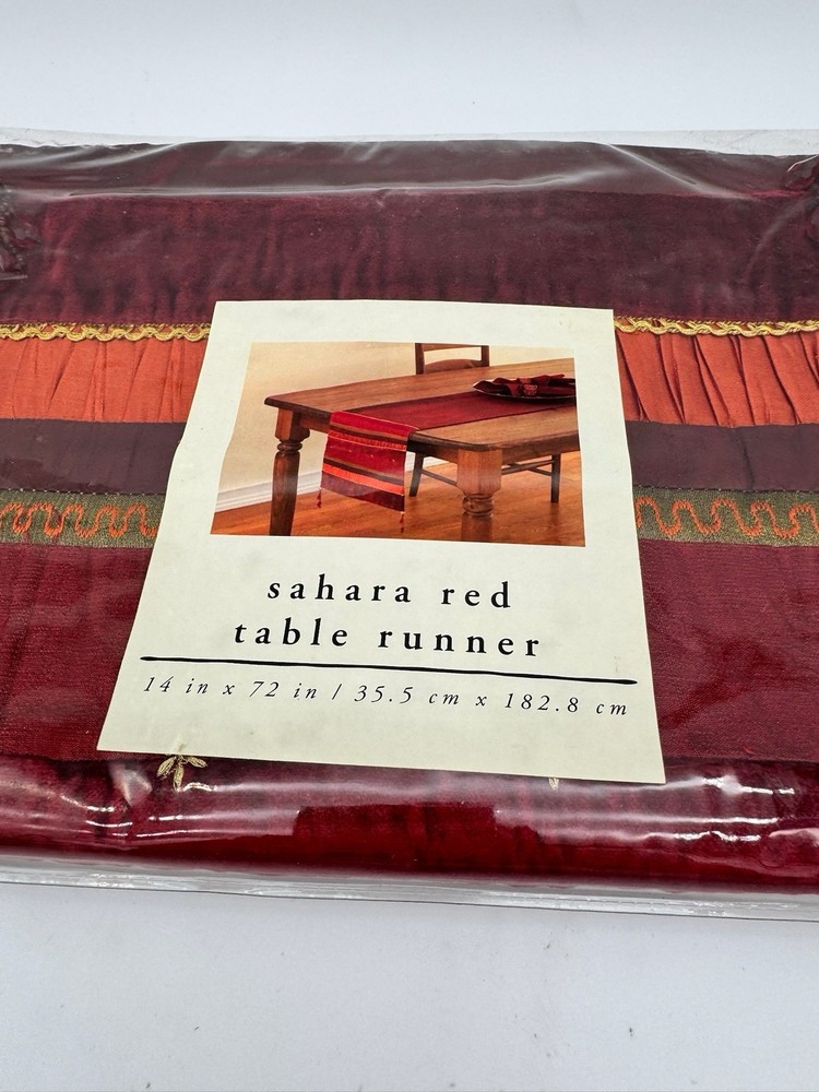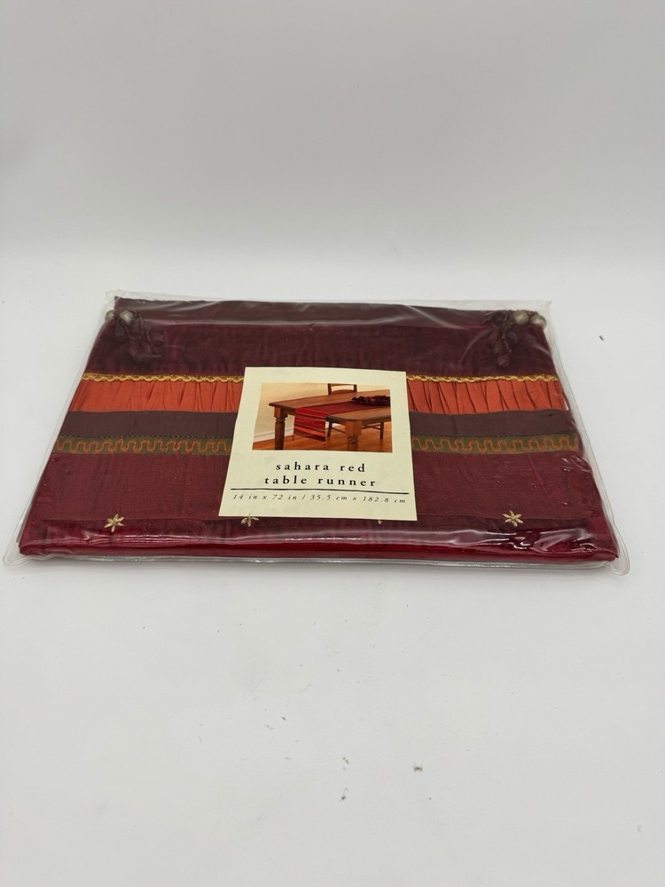 This beautiful Pier One Sahara Red Table Runner will add a touch of elegance to your dining table. Made from high-quality materials, it features a stunning red color that will catch the eye of anyone who sees it. Perfect for any occasion, this table runner is ideal for use in your home or in a restaurant. Whether you're hosting a dinner party or simply enjoying a meal with your family, this table runner will make your table setting look gorgeous. It is perfect for adding a pop of color to your decor and is easy to clean. This table runner is a must-have for anyone who wants to create a beautiful dining experience.