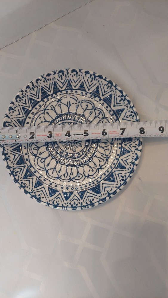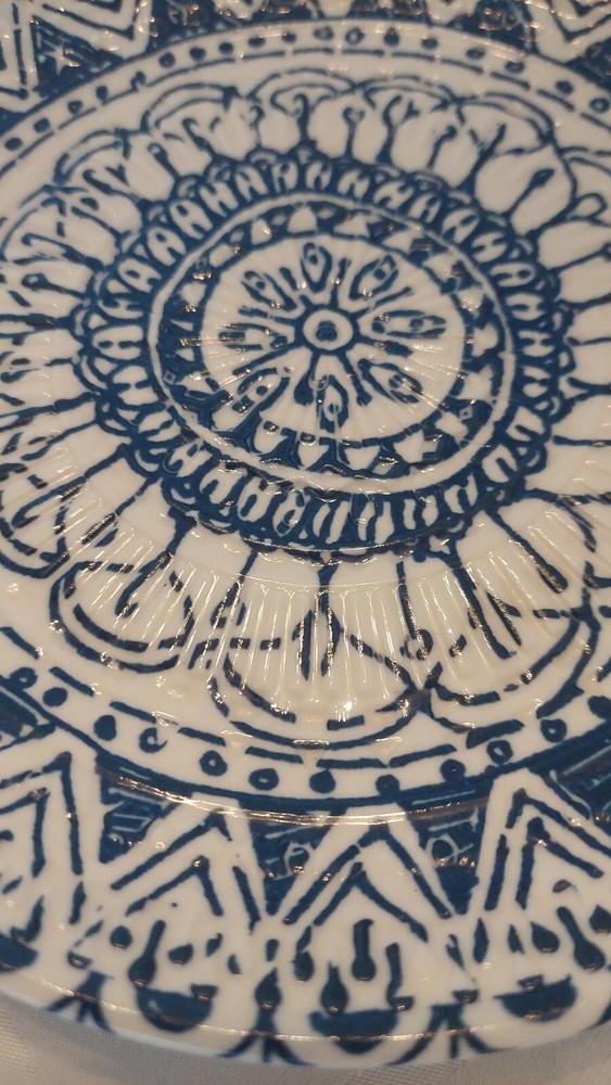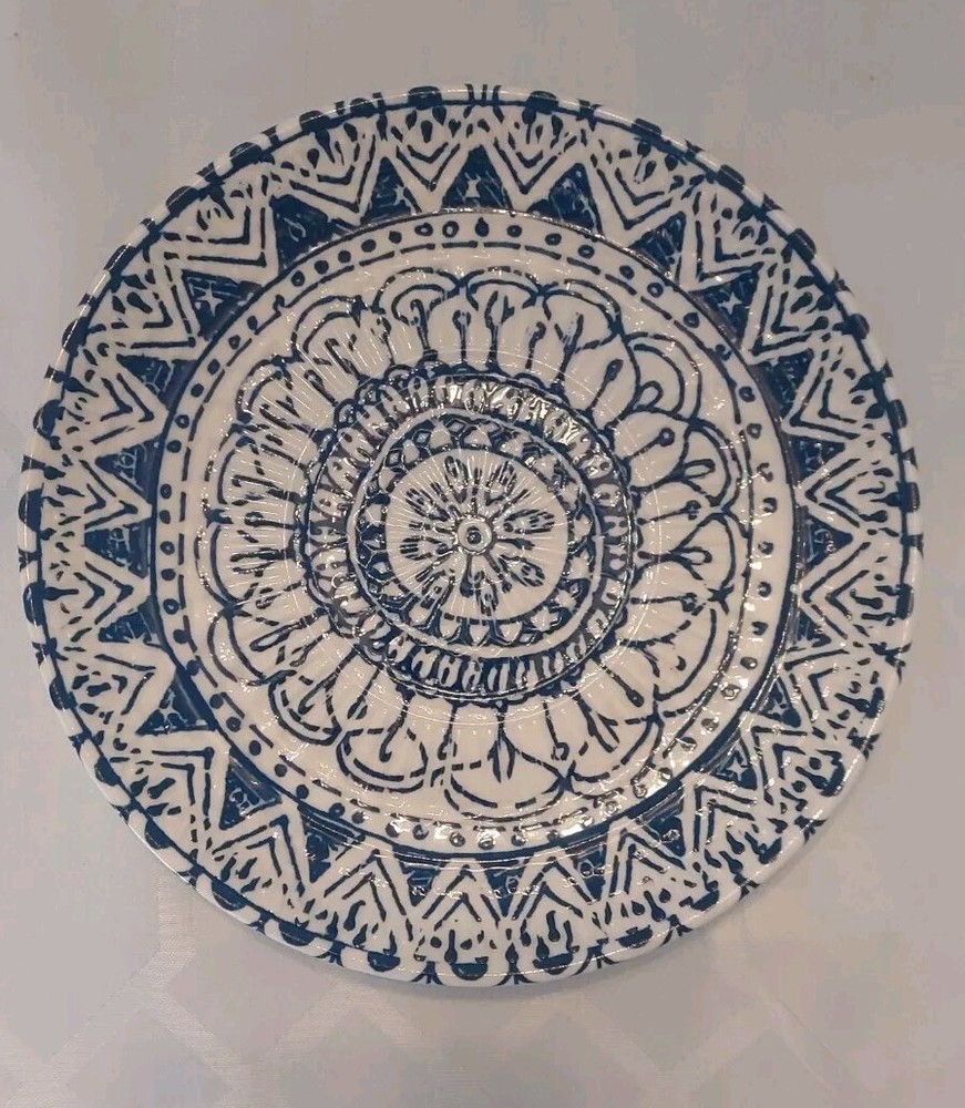 Very pretty Pier 1 Blue & White Painted Textured Porcelain Salad Plate 8 in. Diameter Great as a single decorative Plate or a replacement for an existing set Beautiful gift idea See photos for complet...