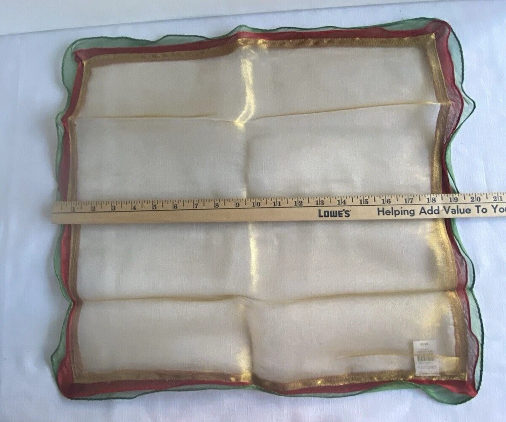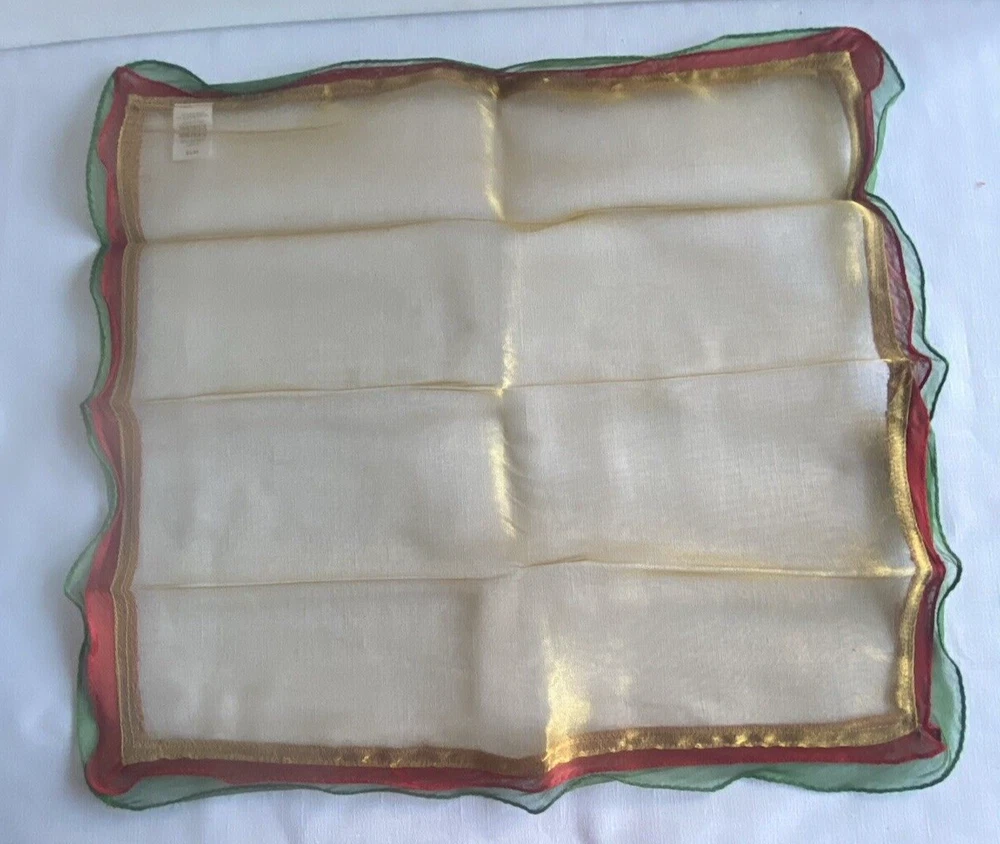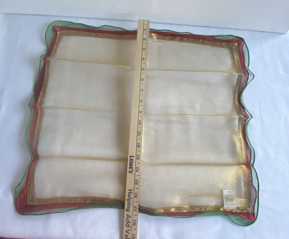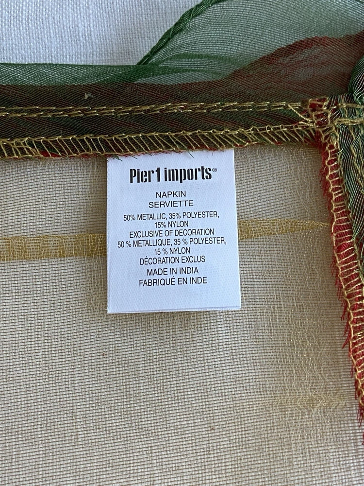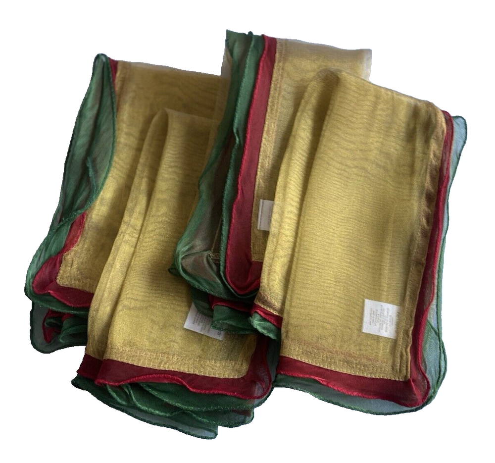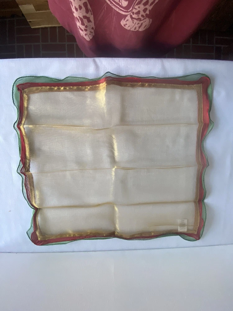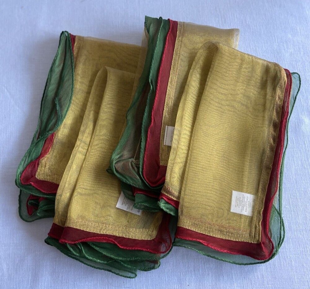 Pier 1 Set Lot 4 Decorative Dinner Napkins Red Grn Gold Metallic Shimmer Holiday Thanks for looking. Please check my other listings for more Pier1 napkins and other accessories.
