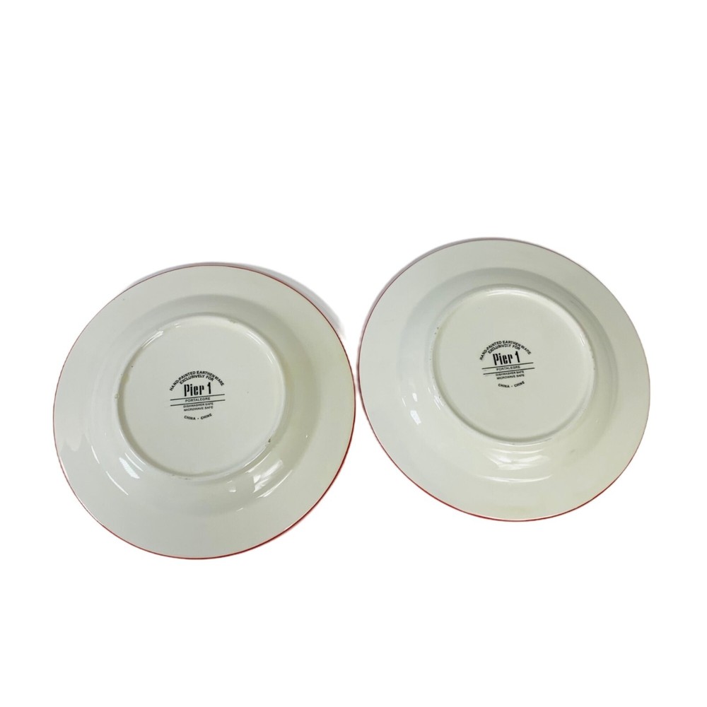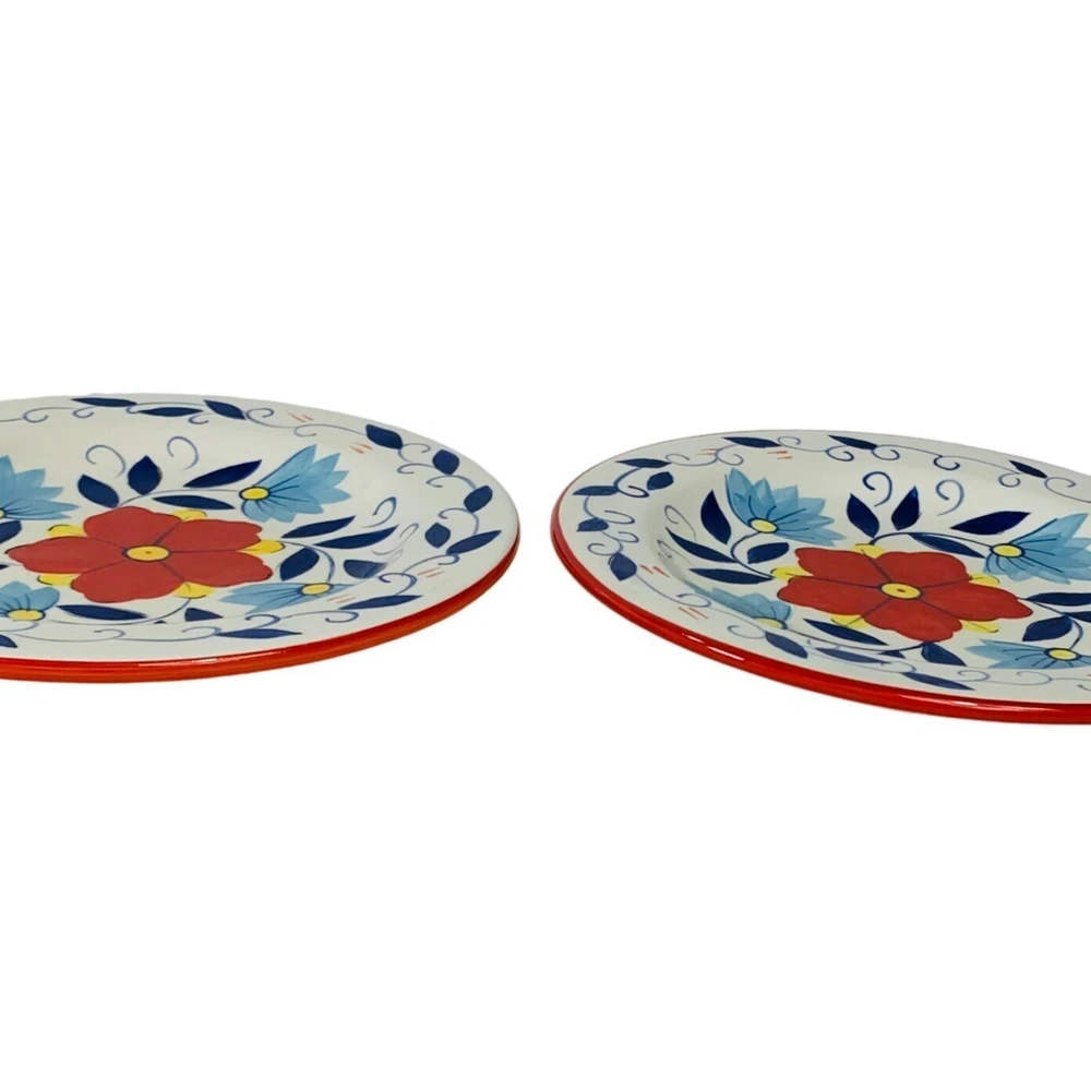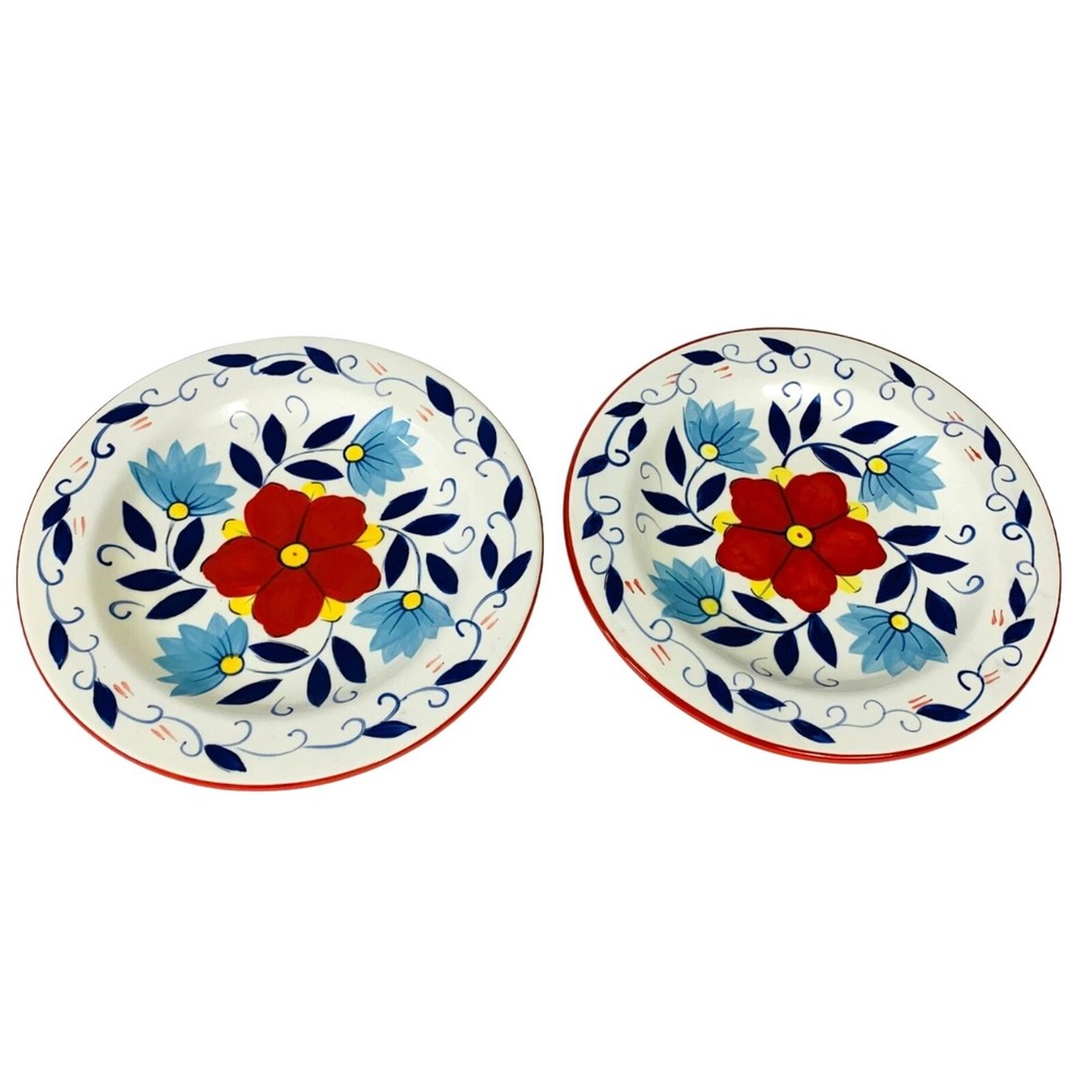 Pier 1 Set Of 2 Plates Portalegre Mediterranean Dessert Salad 8” Stoneware Dish Discontinued Replacement Add a touch of elegance to your dining table with these beautiful Pier 1 Imports Portalegre dessert or salad plates. The set includes two round plates with an 8" diameter, perfect for all occasions. The plates are made of high-quality stoneware and feature Mediterranean colors and floral theme in a stunning pattern. These plates are not only stylish but also practical, as they are dishwasher and microwave safe. The glossy finish and art pottery production style make these plates a must-have for any dinnerware collection. Enjoy your desserts and salads in style with these gorgeous Portalegre plates from Pier 1 Imports. Preowned in great condition. Please see all photos as they are part of the description. lillycoopercloset