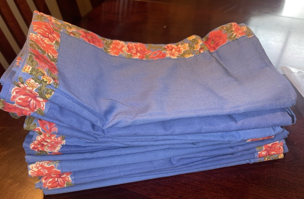 Perfect condition not sure if they were ever used. Please look at photos for condition Set of 12 The Pier 1 Set of 12 100% Cotton Napkins in blue with a red floral Tuscan print border features a square shape and is perfect for fall occasions or multipurpose use. Made in India, these machine washable napkins are both stylish and practical, adding a touch of elegance to your dining table. The Tuscan print and blue color give them a sophisticated look, while the set of 12 ensures you have plenty for all your gatherings.