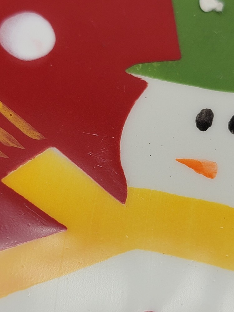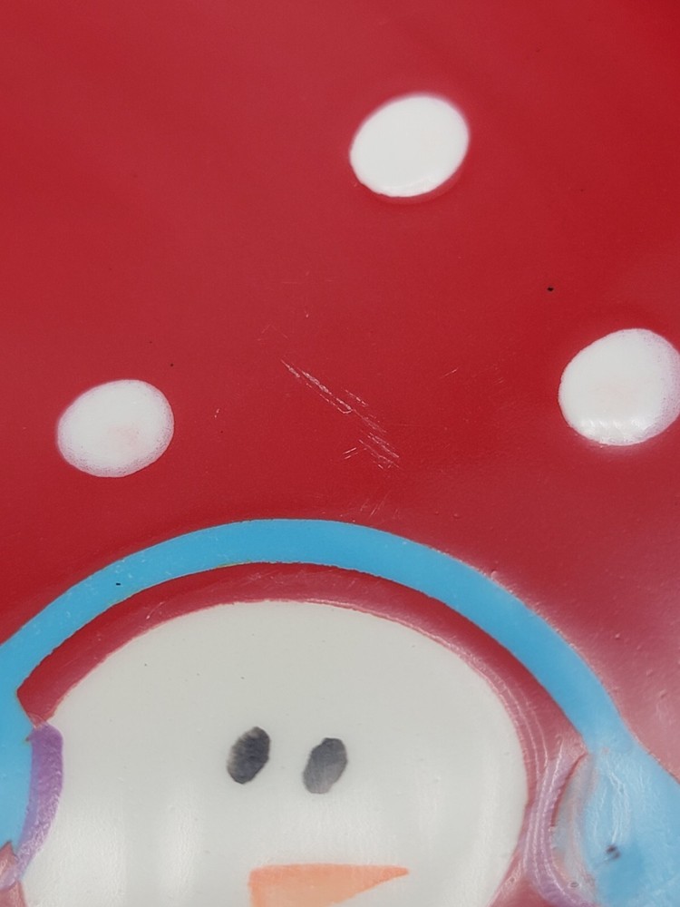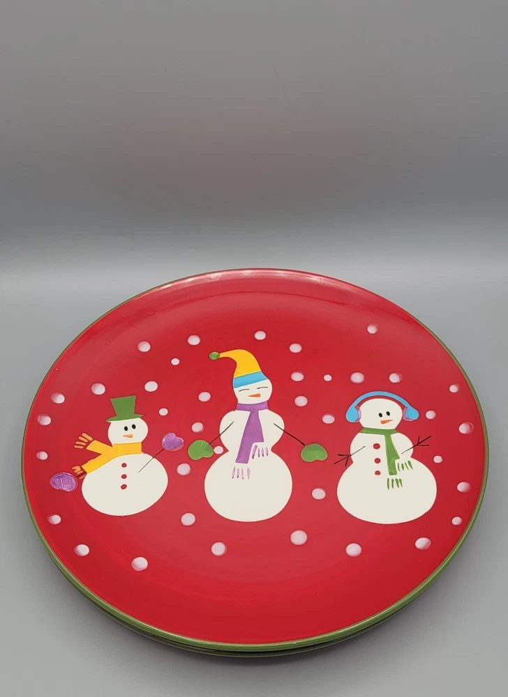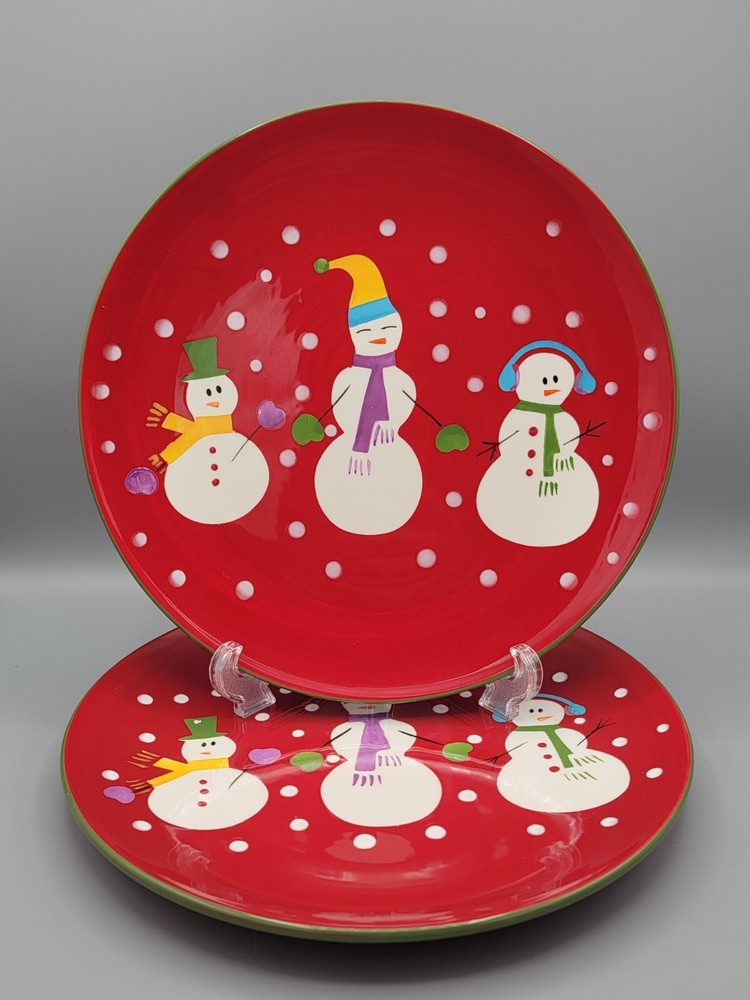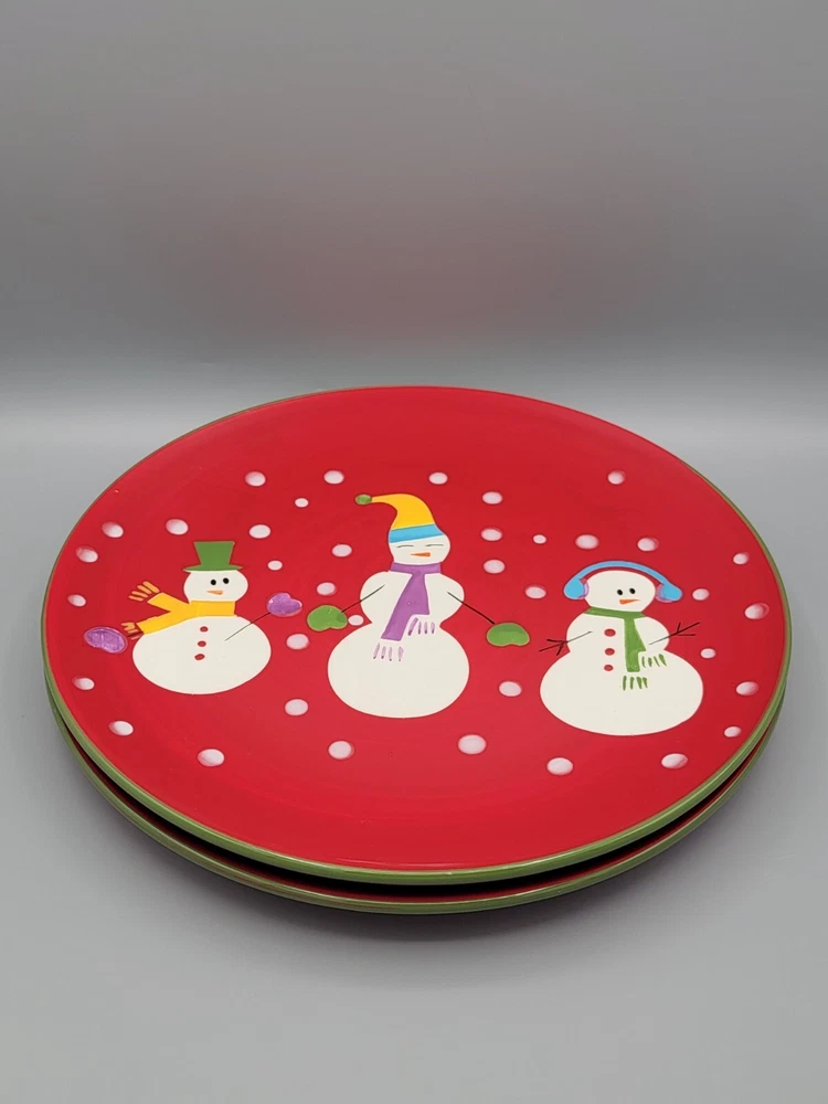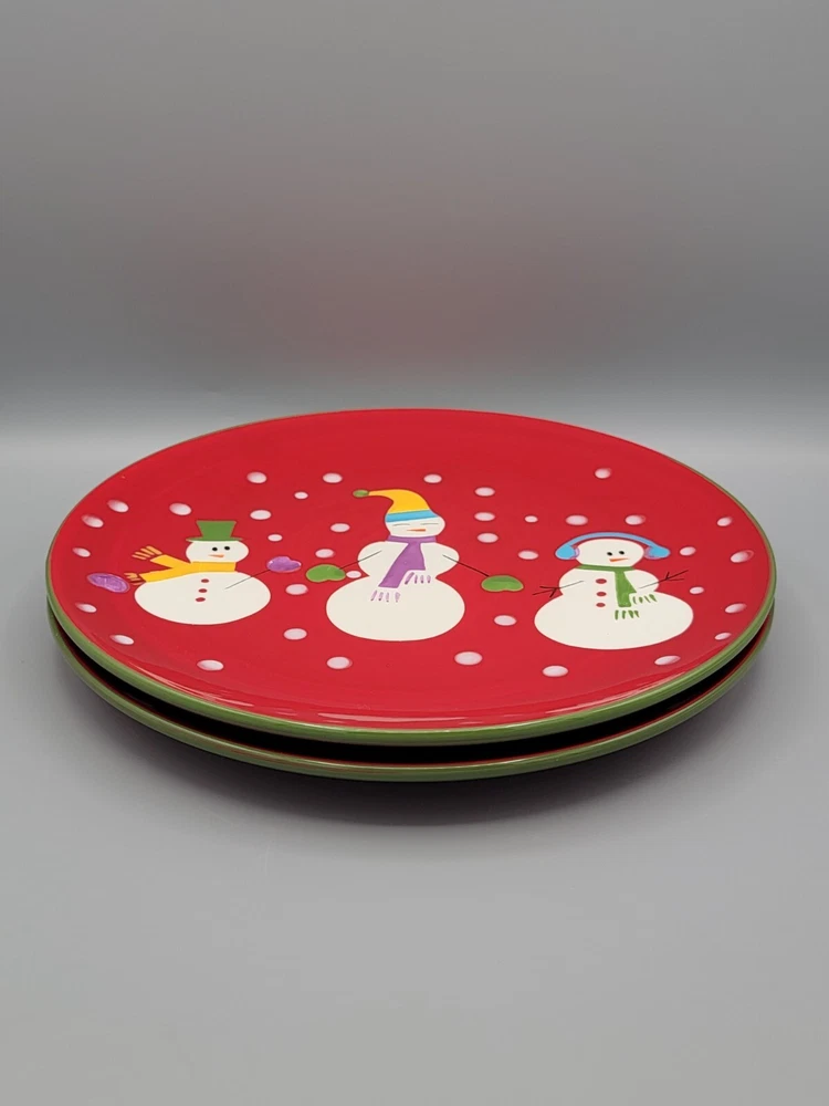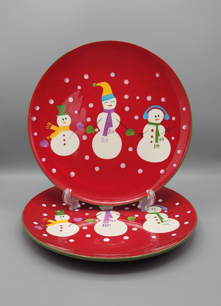 Pier 1 Snowball Dinner Plates Set Snowmen Red Table Dining Dishes Set of 2 Plate diameter is 11". The item shows a few minor scratches and an unnoticeable chip on the bottom, as seen in the photos. These imperfections do not affect its overall appearance or functionality. For a comprehensive evaluation of the item's condition, I recommend reviewing the attached photos. They provide a detailed visual representation that will assist in your assessment. Please be aware that this item is being sold in a vintage/used condition, which may include signs of wear consistent with its age. Every effort has been made to accurately describe and photograph any flaws or imperfections present. However, due to the nature of vintage/used items, minor flaws may go unnoticed. If you have any questions or require additional photos, please don't hesitate to reach out before making your purchase. Your satisfaction is our priority, and we want to ensure a transparent and enjoyable shopping experience. To initiate a refund for an item damaged during shipping, please provide a clear photo of the merchandise and its packaging within 3 days of delivery. This documentation is necessary to process your refund efficiently.