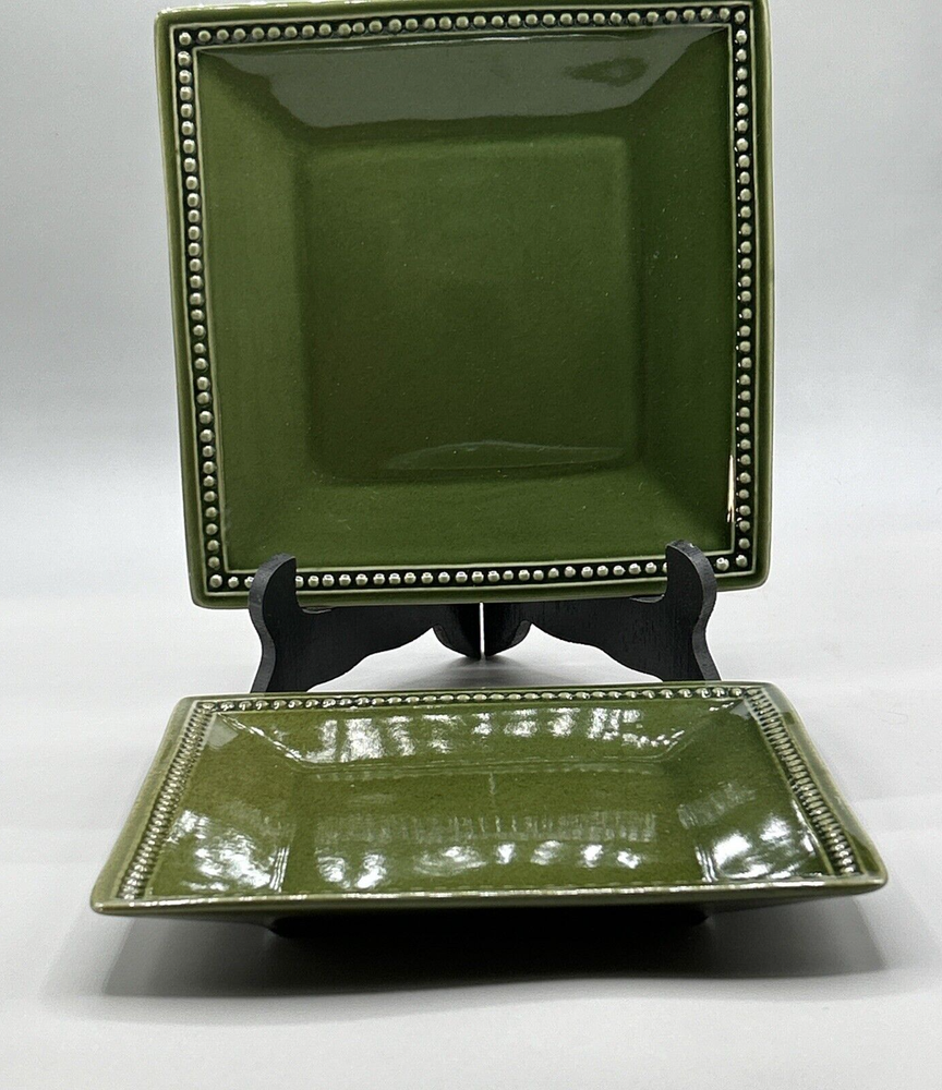 Love these vibrant green clove plates! The beaded edge adds a beautiful touch, and they’re in fantastic preowned condition—no stains or damage. A little extra cleaning might be needed, but the seller is transparent with photos and happy to answer questions. Perfect for adding a pop of personality to any table setting!