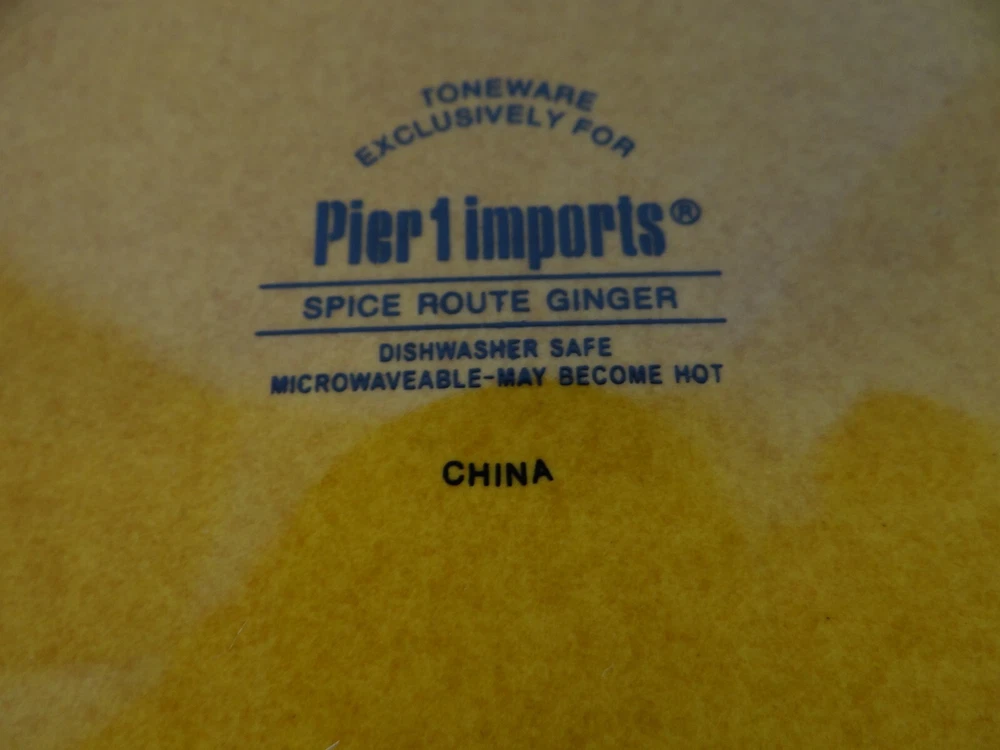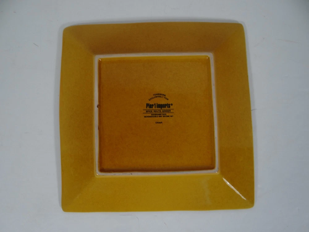 Here is a Pier 1, Spice Route, Ginger, square salad plate, dishwasher safe, microwave safe, but may become hot. The plate measures 8 3/8 inches across. Pre-owned, nice condition, no chips, no cracks. Please ask any questions that you may have. Thanks for looking! F3 240715 240709-5