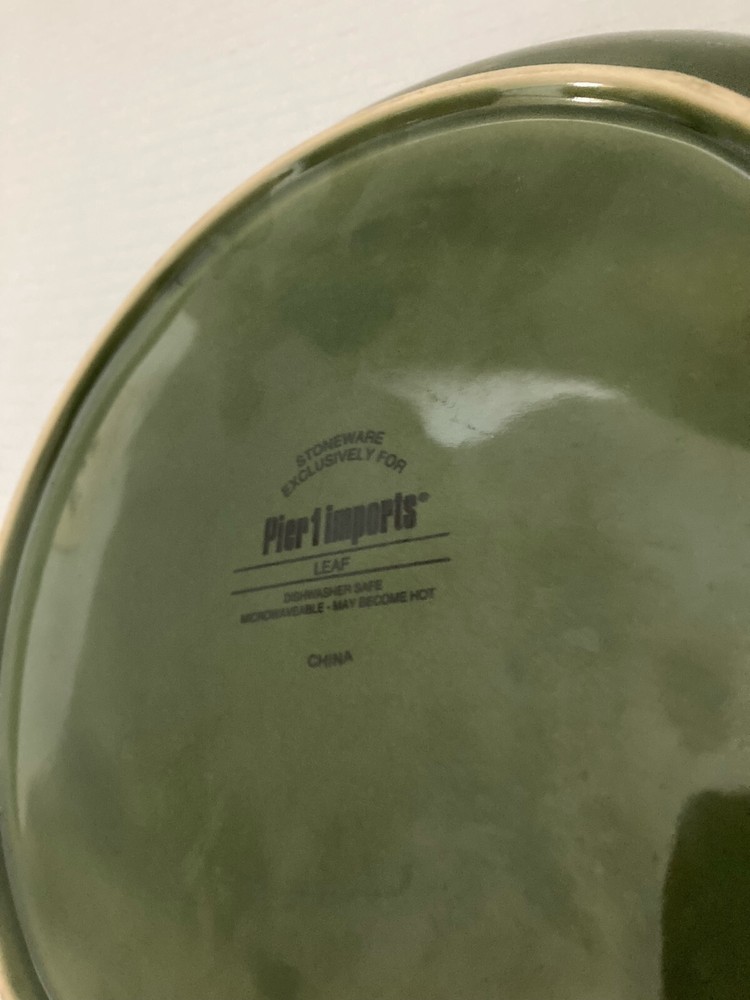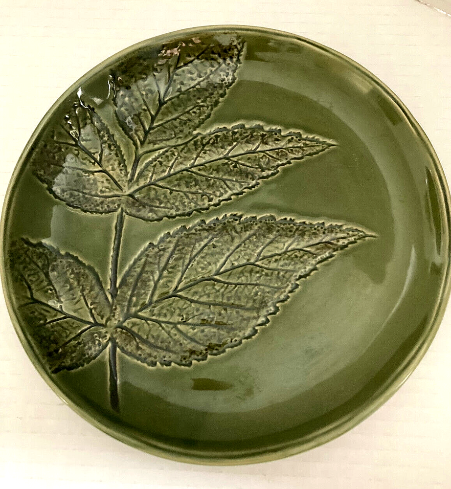 Pier 1 Stoneware Green LEAF Pattern Plate 8 1/4" Pristine NOS Pre-owned New old stock from store clearance without damage or evidence of table use. ***please review enlarged photos as part of subscription*** Shipping from smoke-free and pet-free environment. Single shipping fee nationwide Questions welcome!