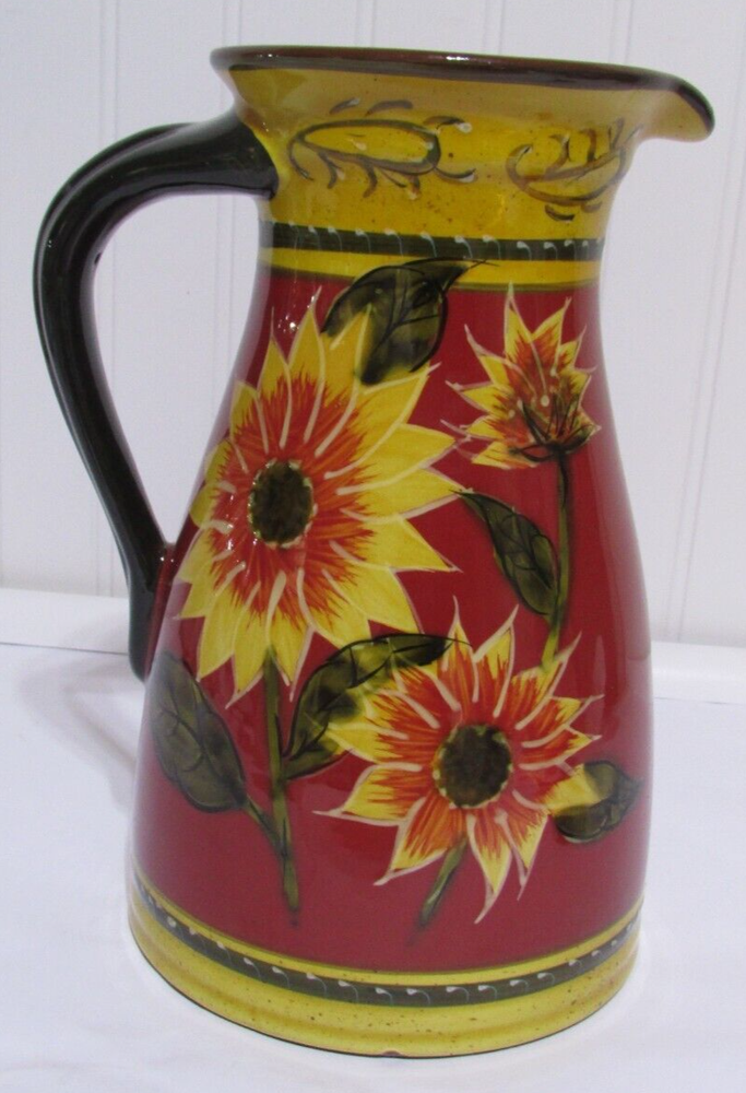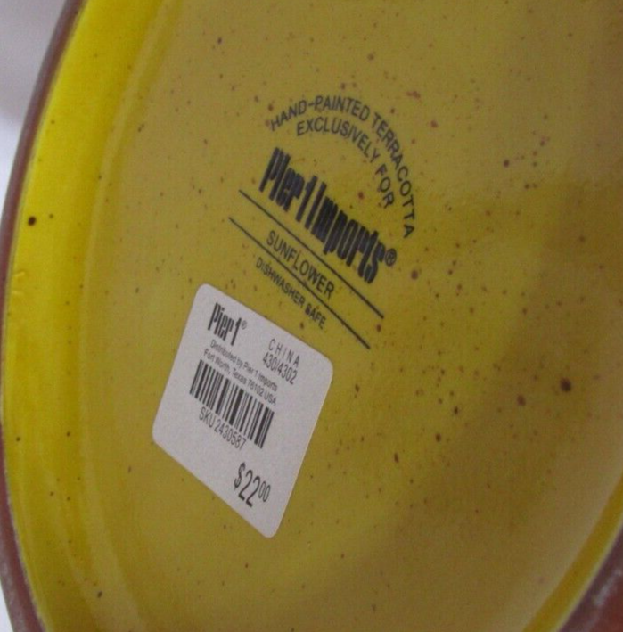 Pier 1 Sunflower Pitcher 2 Quarts Still has the tag on the bottom. Shipping -- item will be shipped within one business day of your purchase--typically we use USPS but reserve the right to use Fed Ex. If you have a preference, please let me know!! Feedback--we will leave feedback for every transaction--we would like you to do the same. Problems--If you have any problems please let us know. We have worked hard to maintain our excellent feedback and will make sure any problems are resolved. Thank you for stopping by our auctions!!