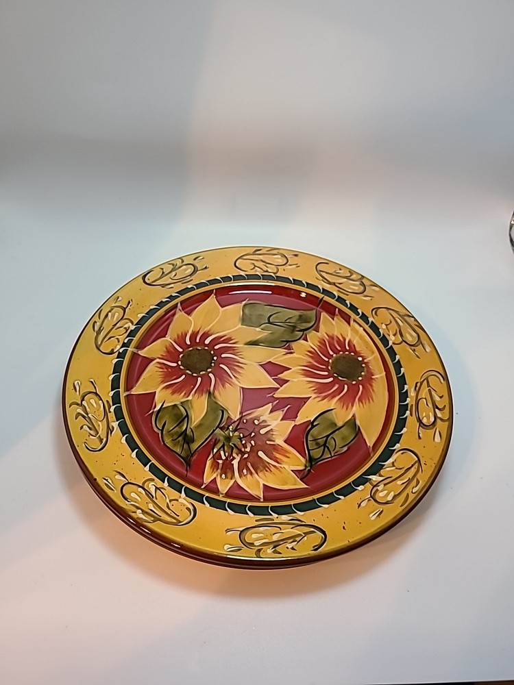 These sunflower salad plates are absolutely charming! The vibrant hand-painted design brings a cheerful, rustic touch to any table. Perfect for summer dinners or brunch, they’re sturdy, microwave-safe, and in great condition. Love the mix of colors and paisley detailing—such a steal for a set of four!