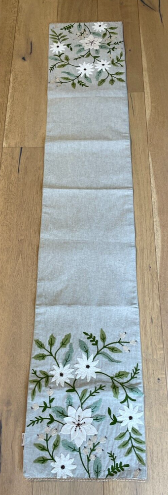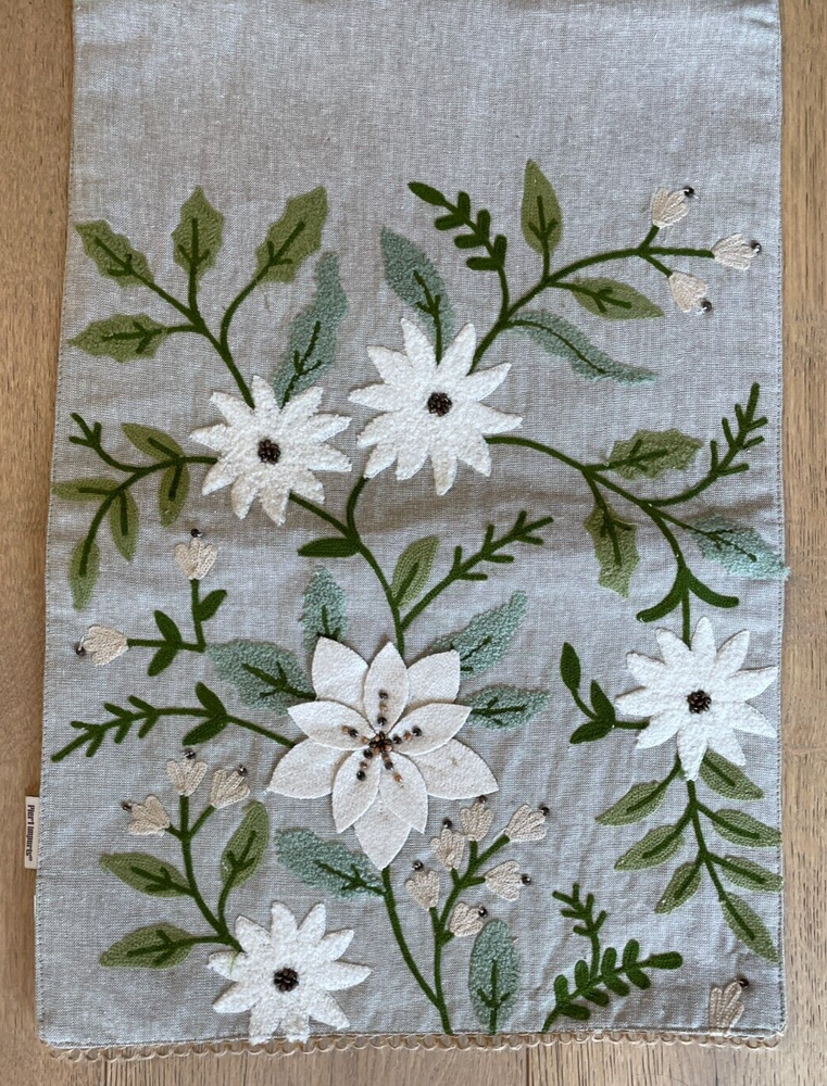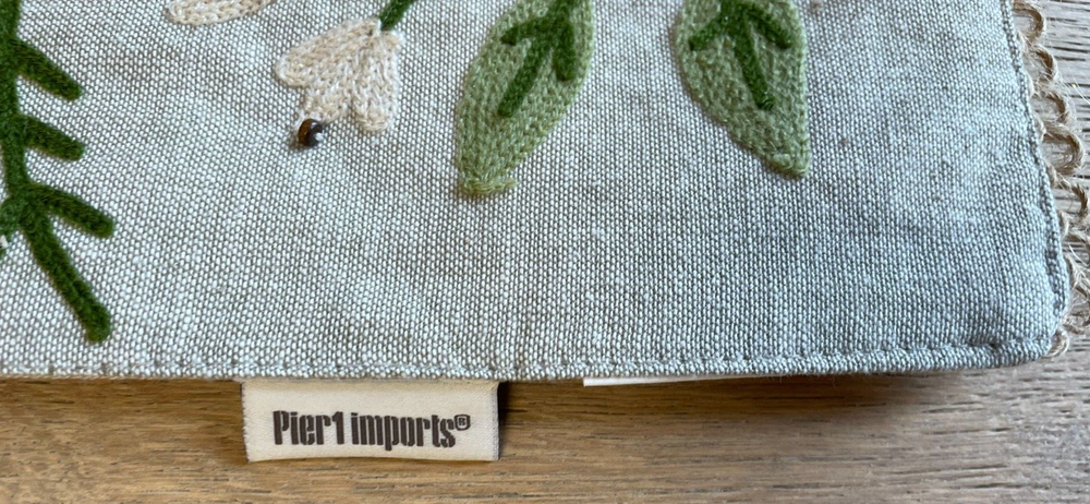 Happy to answer questions. Shipping to Continental US only. Three shipping options. Please click on "details" next to shipping to view. No added handling charge. Add a touch of countryside charm to your dining experience with this Pier 1 Jute Table Runner. It features a delightful floral pattern with neutral tones that effortlessly complement any table setting. The runner's dimensions, 72 inches in length and 13 1/4 inches in width, make it a versatile choice for a range of table sizes. The table runner embodies a farmhouse, rustic, and cottage style, bringing an inviting feel to your meals. With its intricate beaded and embroidered details, it's not just a functional piece but also a decorative one that can elevate your table decor for any occasion.