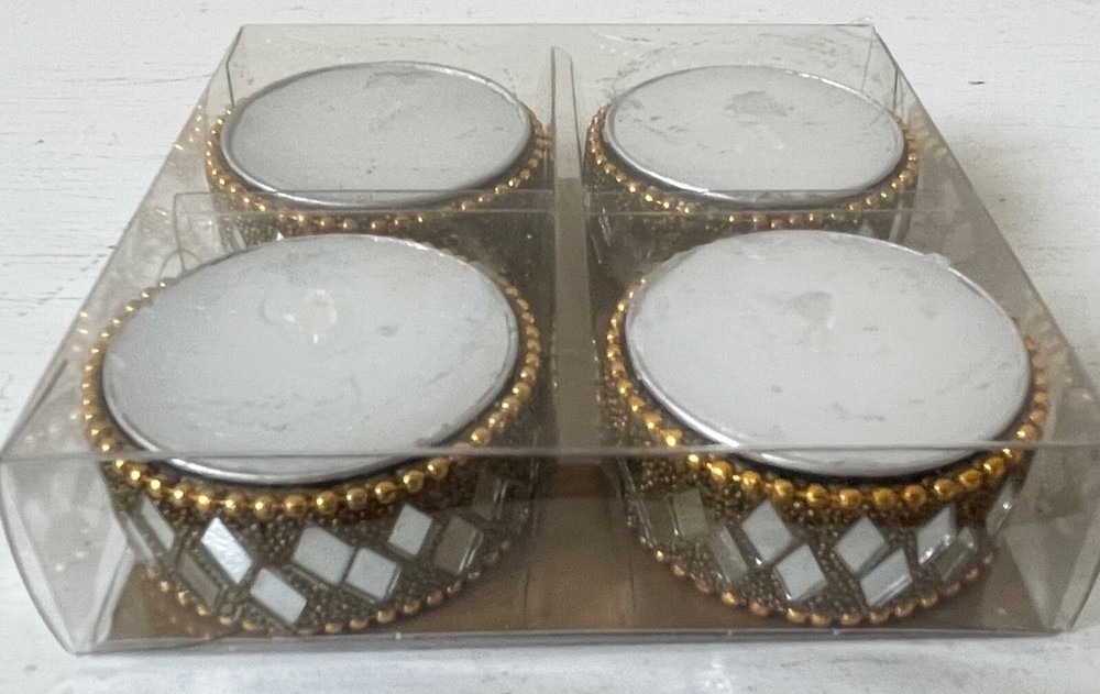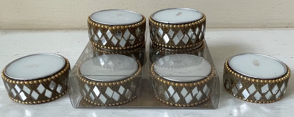 Pier 1 Tea Light Candles & Holders Silver Beaded Mirror Cut Diamond Shape Design EXCELLENT NEW CONDITION 4 Still in original box 4 are out of the box but never used!!!!! Email me with any questions....