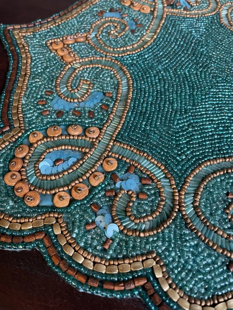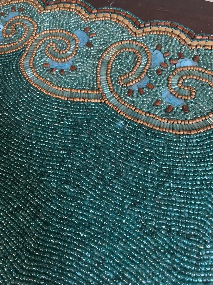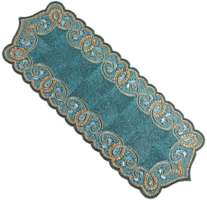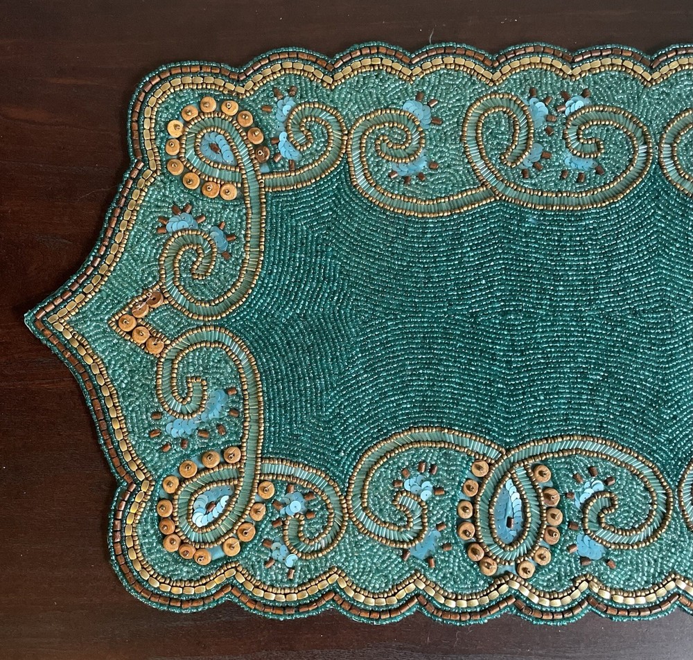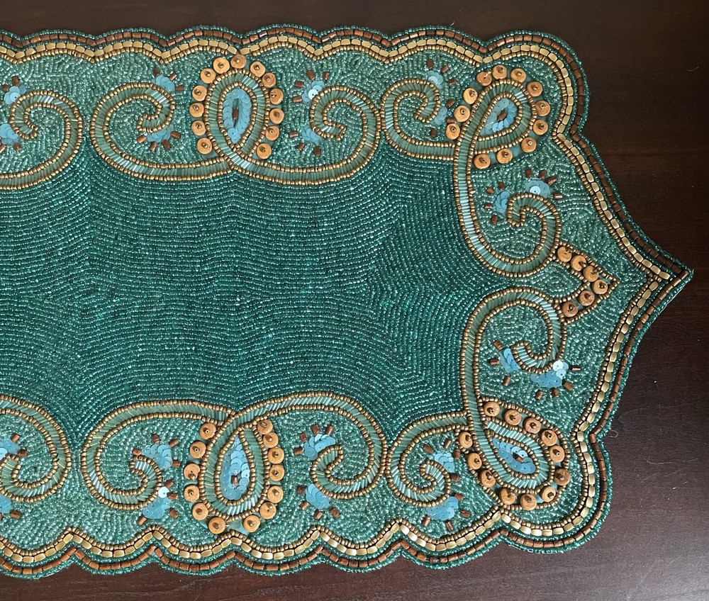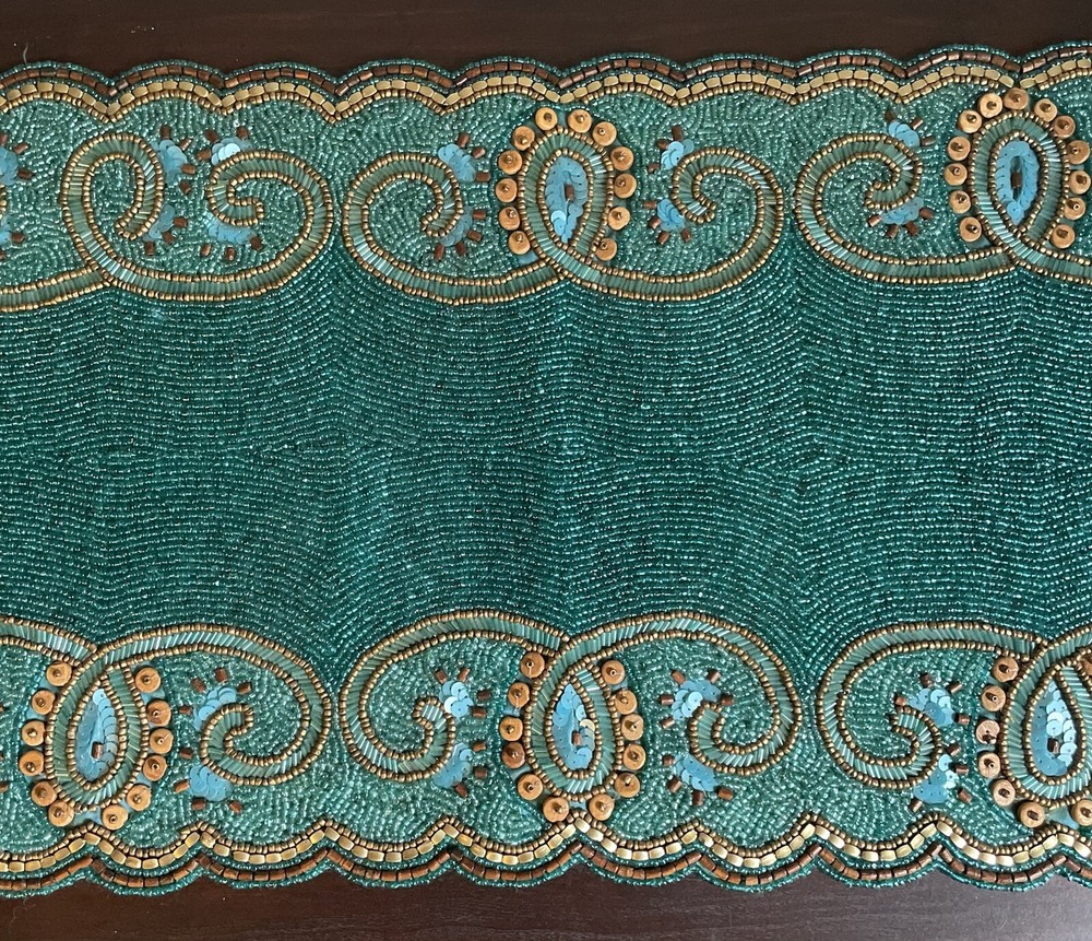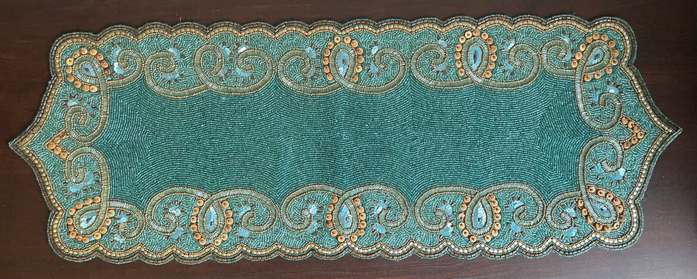 Pier 1 Teal Beaded Table Runner Great condition Size: 13” x 36”