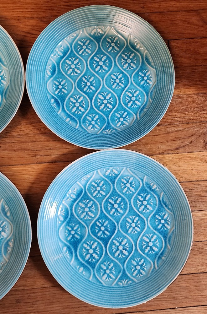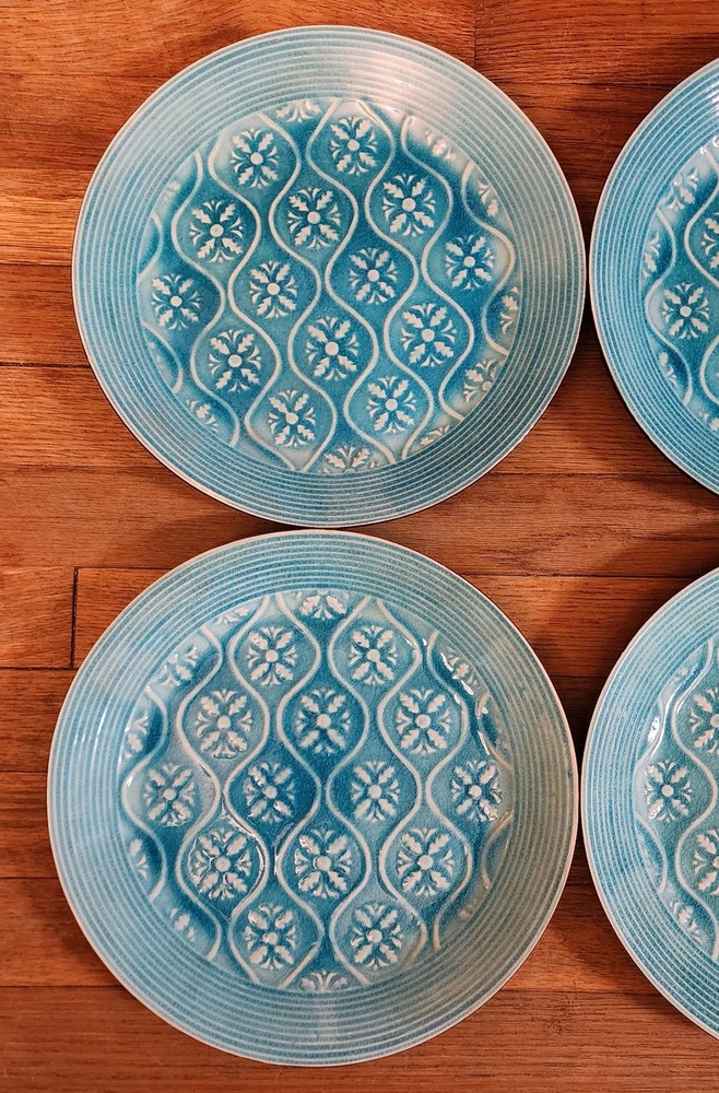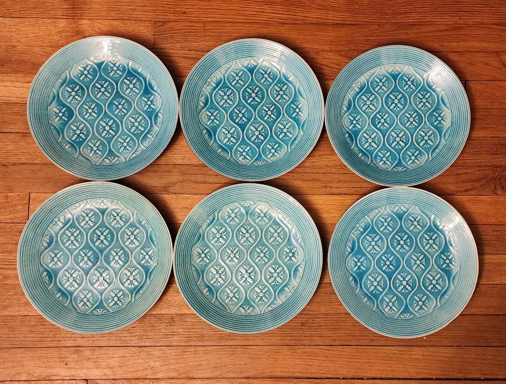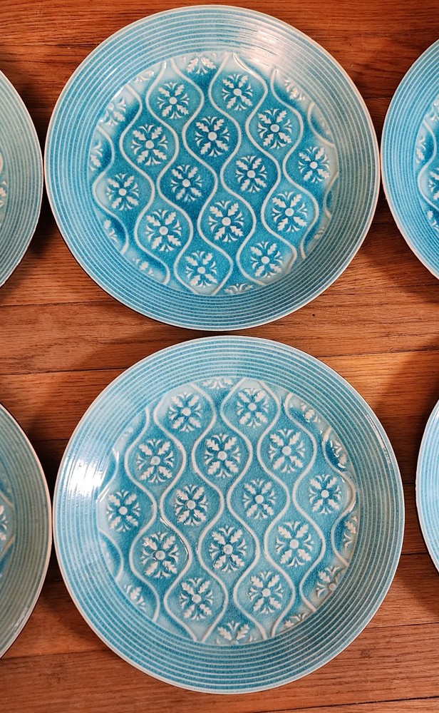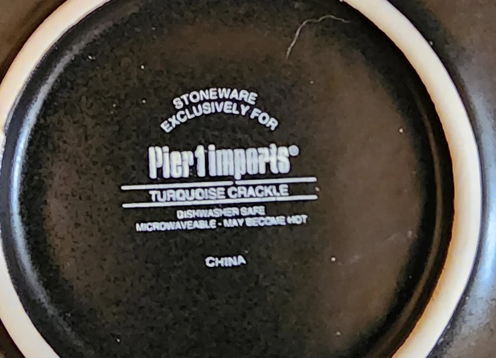 Vintage Hard to Find Pier 1 Imports Turquoise Crackle 11" diameter 6 piece Dinner Plate Set Stoneware Black backed Wavy pattern on front These are gorgeous coordinated with many decorating styles and look especially nice with Nautical or ocean decor EUC No defect or damage noted No cracks, breaks, or repairs Please view pictures as they are part of the description Smoke free home Note: Each replacement plate typically sells for around $20.00 Please ask all questions before bidding or buying. Returns are not accepted. Colors appear different across devices, however I have attempted to adequately represent the item. Pre-owned items may show normal wear. I strive to photograph items from all angles. Shipping is via least costly method. If expedited shipping is desired please contact me prior to purchase or make an offer requesting the expedited shipping you need. I will present a counter offer which includes your offer plus expedited shipping. I am a motivated seller. Making offers is encouraged to expedite the purchase process, as you do not need to wait for an auction to complete. REASONABLE offers are considered and often accepted. Please bid fairly. I have researched most items and am aware of how same/similar items are priced and what they have recently sold for. Items listed here should already be a great deal, but being the first to make a REASONABLE offer will get you an even better one. Reseller friendly. Are there a number of items you're interested in purchasing? Send me a message and let's work out a bulk price and discuss how you would like your items shippe