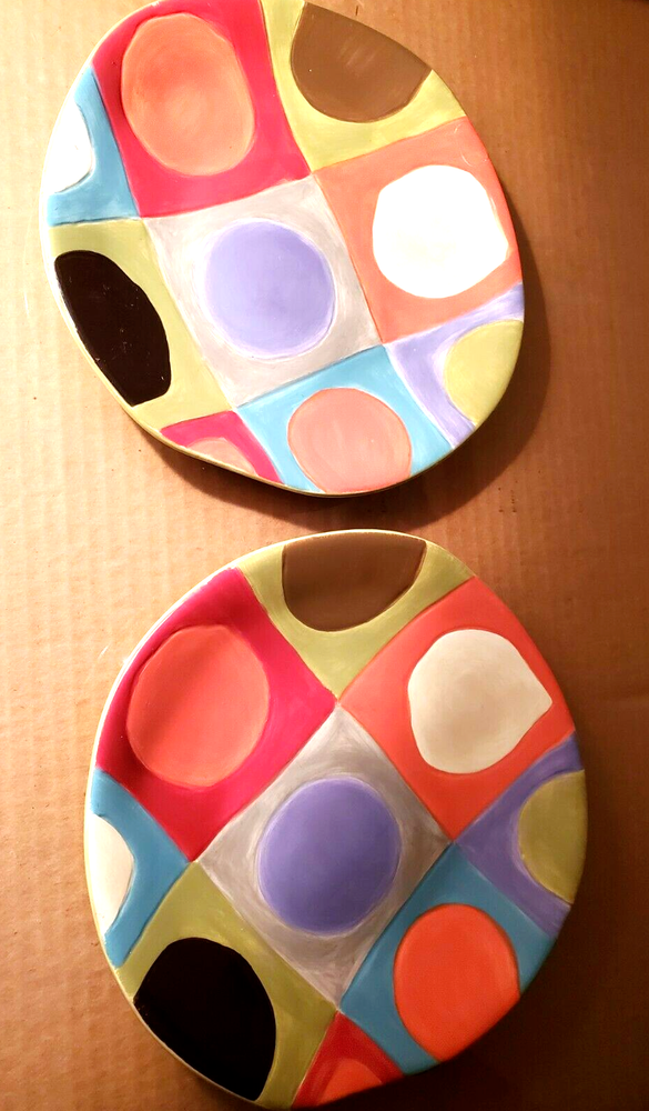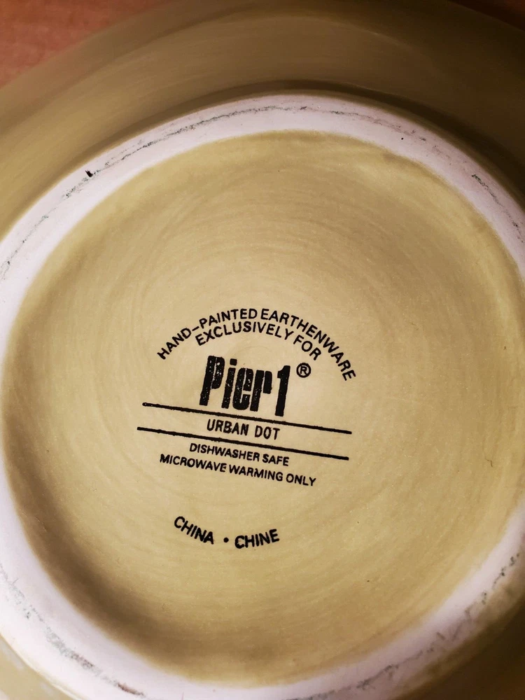 Pier 1 Urban Dot Salad Plates Discontinued Set Of 2. Used condition with some flaws as noted in photos (small flea bite chip and another spot where cracked or repaired where broken. Please see ALL photos and message seller with any questions. PLEASE NOTE: My shipping allowance of 10 business days is a precautionary measure because I travel. More times than not, I am in town and your item will be shipped in 1-2 business days, but occasionally I am on a business travel trip and need additional time to ship. Shipping is calculated by ebay based on weight of item(s) after packaging and dimensions of shipping box/vessel. The shipping charge that you see on this listing is specific to YOUR location. I will NOT alter the shipping calculation.
