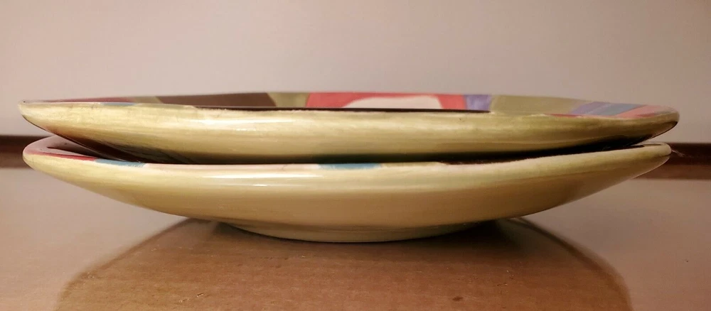 Love these unique Pier 1 salad plates—perfect size, bold design! Minor flaws shown in photos don’t affect use at all. Seller is transparent and ships quickly despite the travel disclaimer. Great price for a stylish set—would buy again!