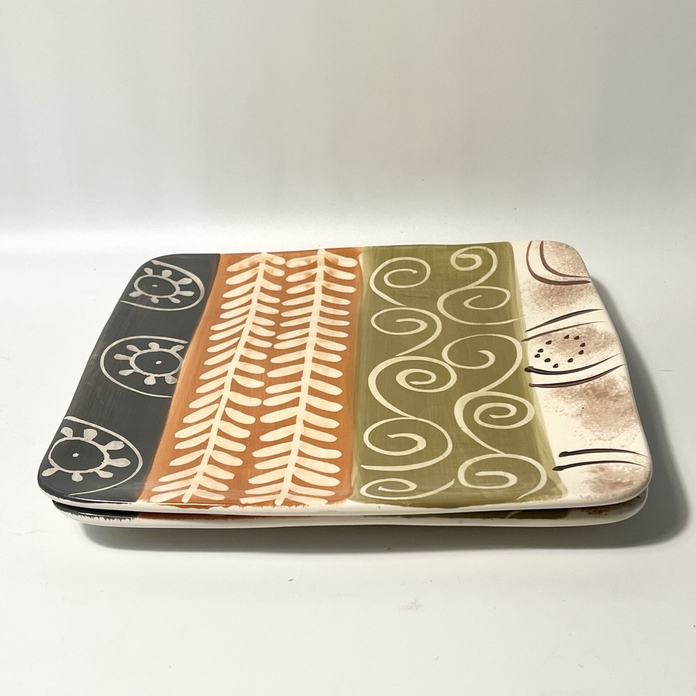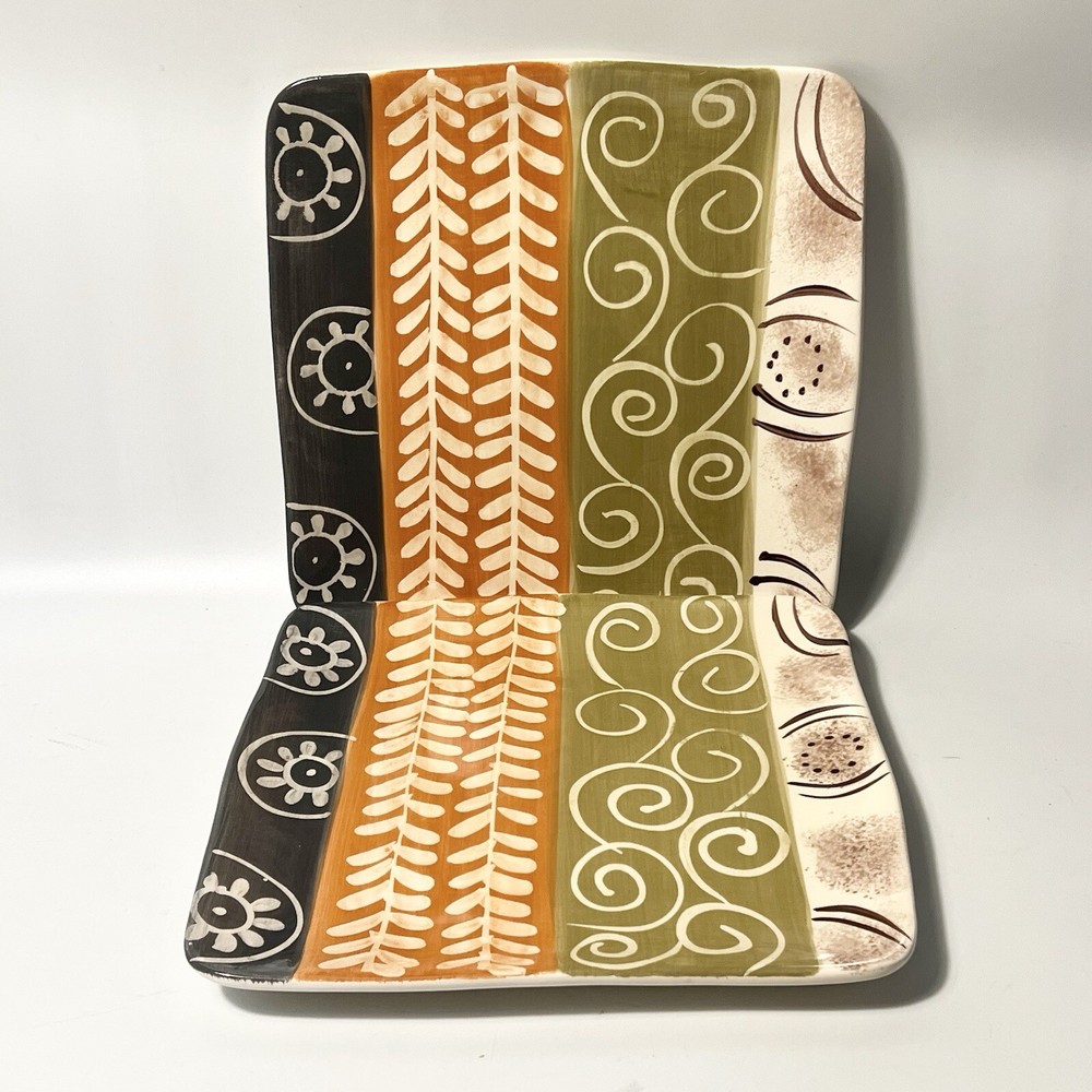 Pier 1 VENLO Square Serving Platter Earthenware Dinner Plate Set Of 2. Condition is Used. Shipped with USPS Ground Advantage.