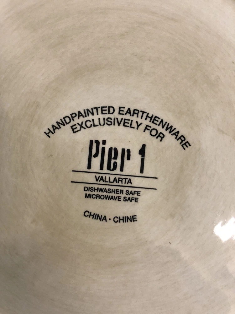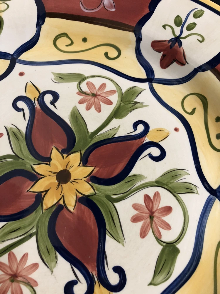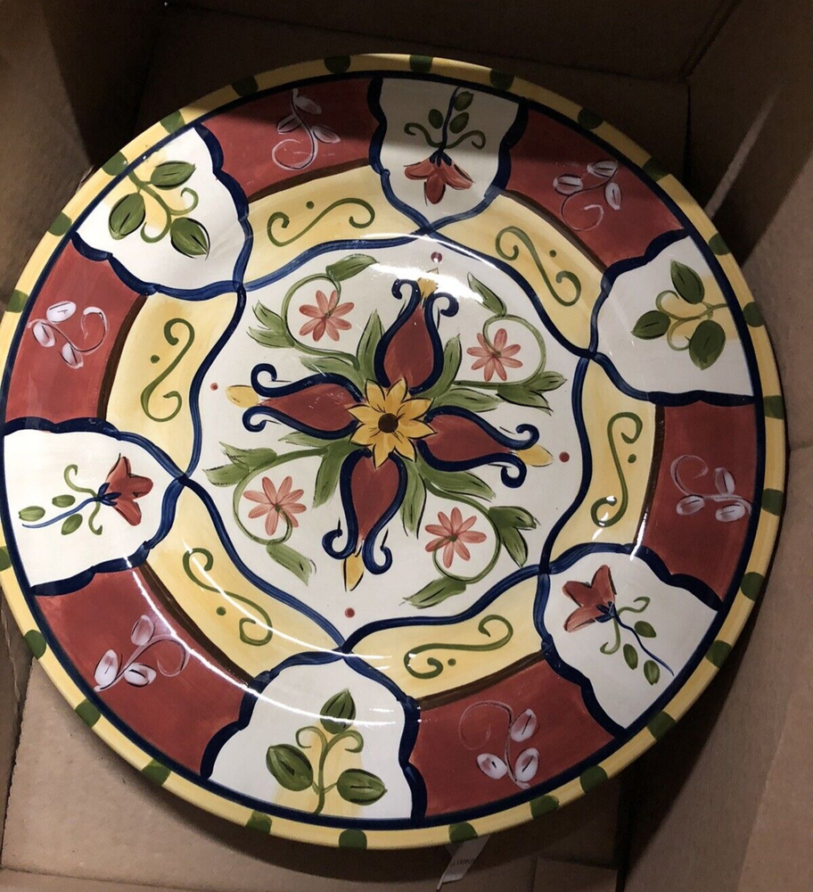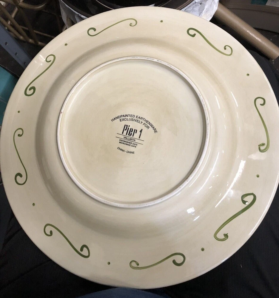 Pier 1 Vallarta Dinner Chop Charger Platter Plate 13" Hand Painted Earthenware (Listing is for one plate) Please review all photos (they are part of the description) and ask us any questions prior to purchasing as we are unable to accept returns. Thanks for looking and supporting our mission to raise funds for animal rescue and welfare efforts!