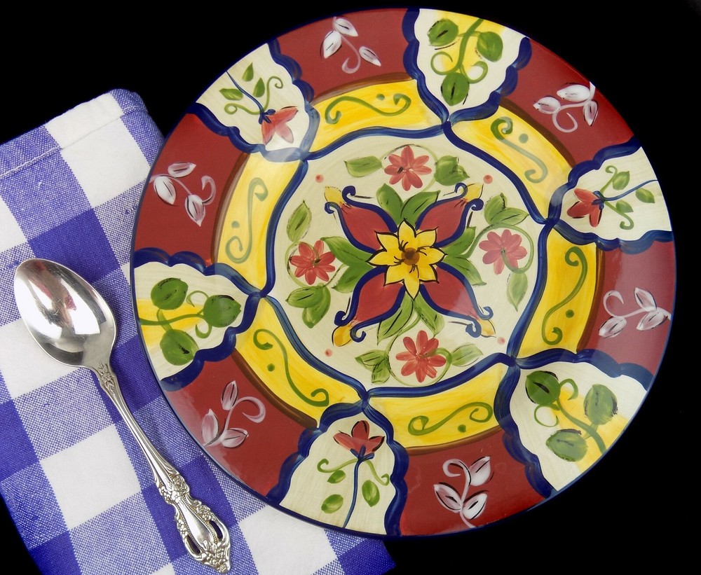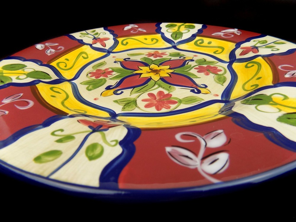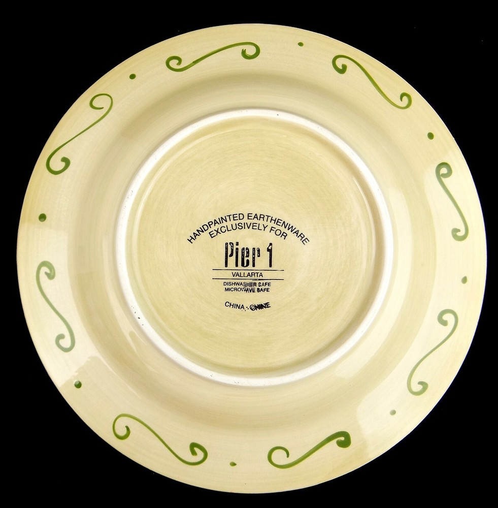 Handpainted earthenware single salad plate by Pier 1. Tuscan Italian style - 'Vallarta'; 9" Multi-color. Dishwasher and microwave safe. Excellent pre-owned condition with no signs of use. Please refer to all photos. *To avoid inconvenient returns, please refer to all pictures and all measurements. If you need any more measurements, pictures, or information, please feel free to contact me. All items are well packaged with no handling charge and shipped out same or one business day via USPS Priority. BxD