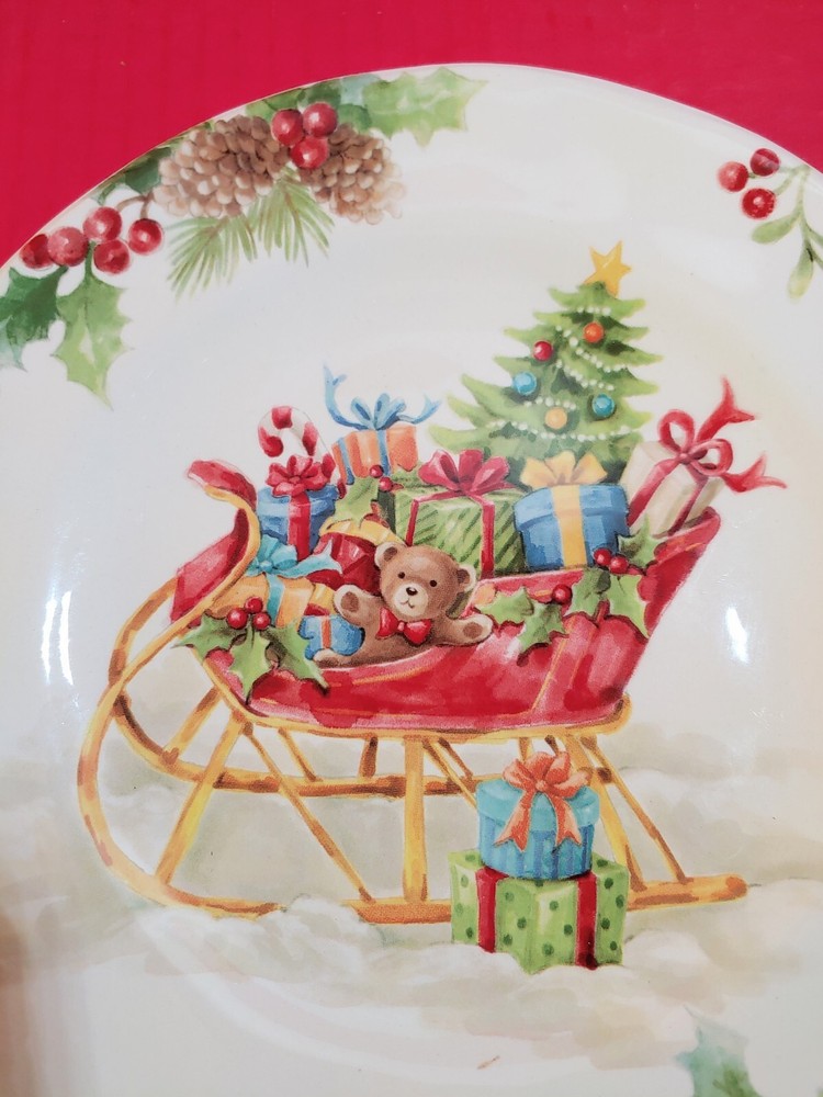 Pier 1 WINTER'S WONDER Accent Salad Plate 8 3/4" Santa's SLEIGH W/GIFTS Excellent pre-owned condition, no signs of wear...