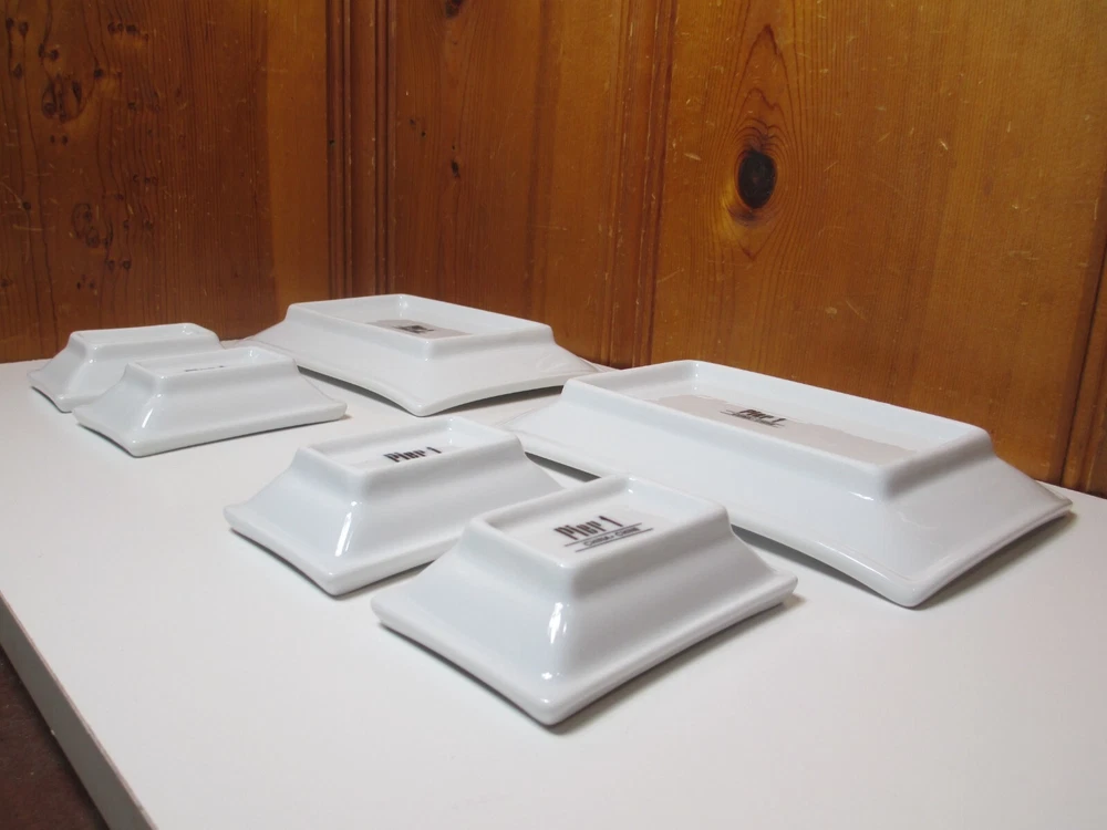 Pier 1 White 6-piece Porcelain 2 Sushi Plates (8 1/4" x 5 1/2") & 4 Dipping Bowls (4" x 2 1/2") Dishes Set for 2