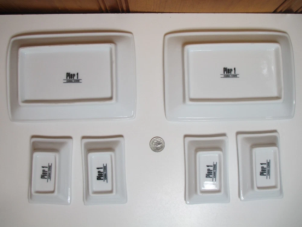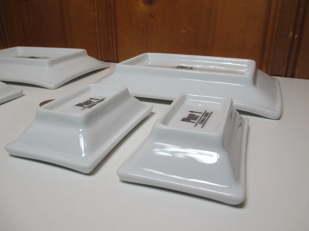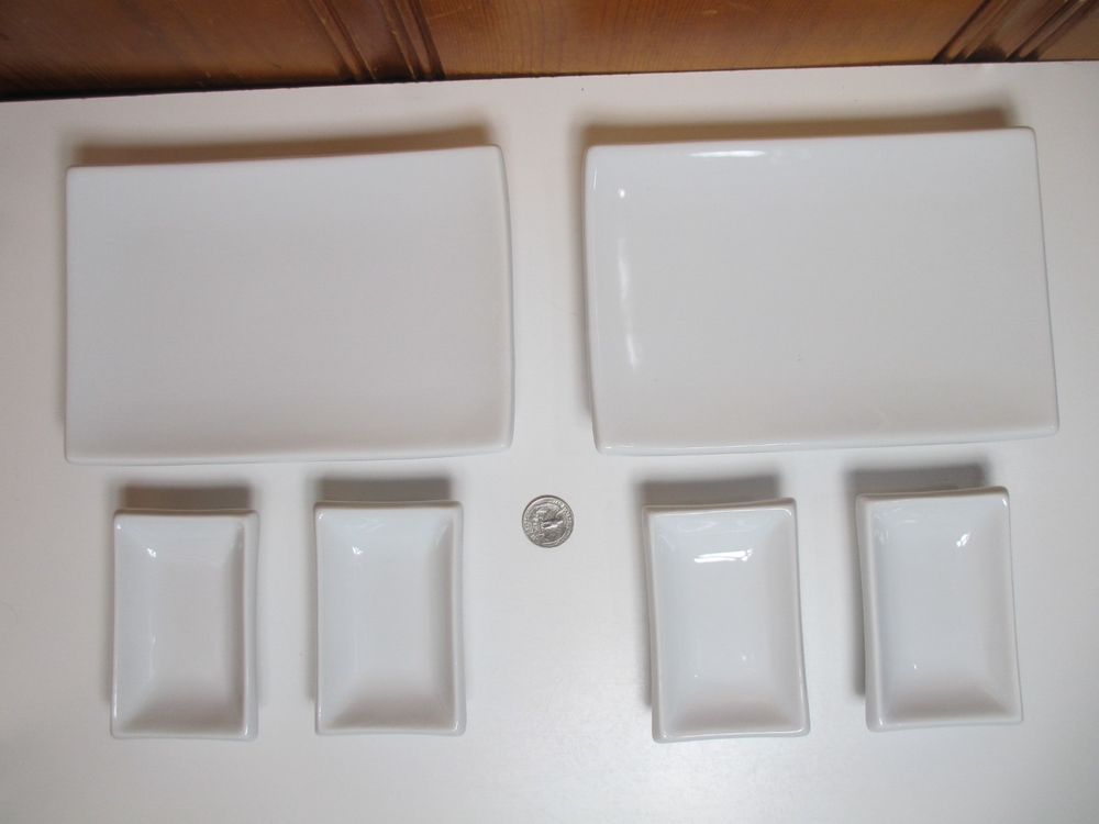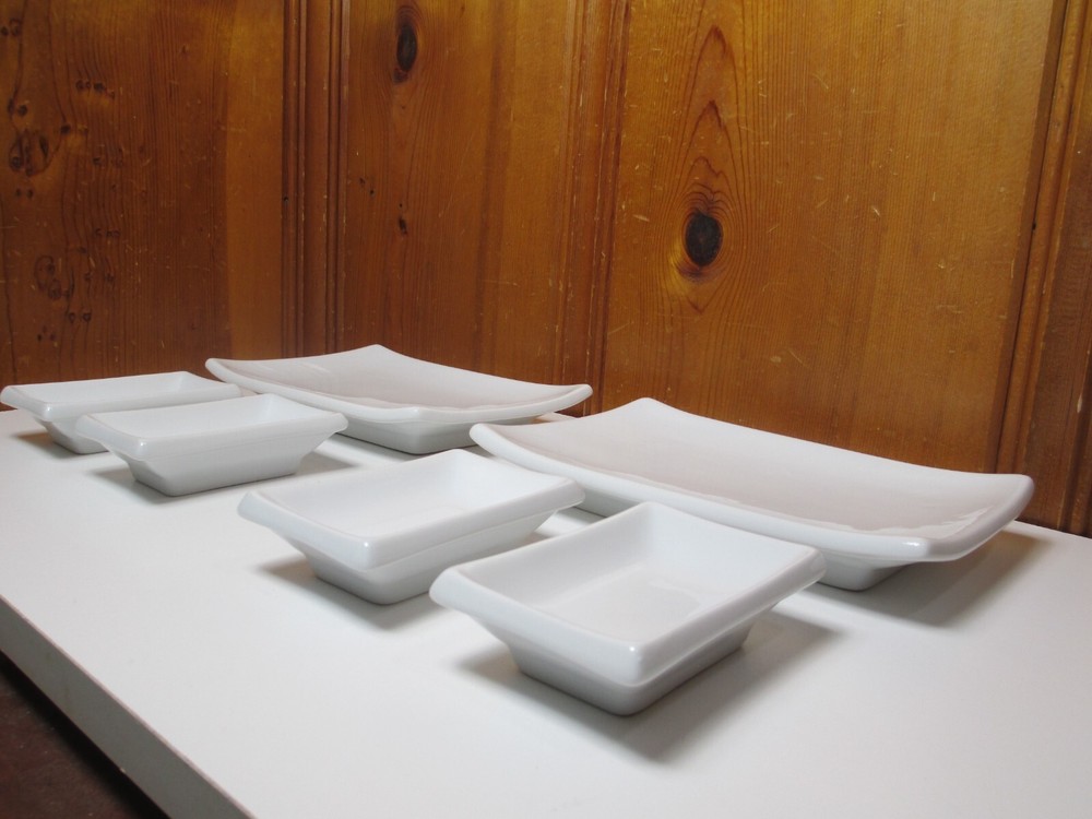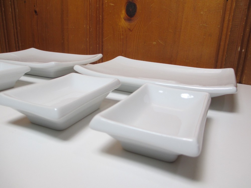 Pier 1 White 6-piece Porcelain 2 Sushi Plates (8 1/4" x 5 1/2") & 4 Dipping Bowls (4" x 2 1/2") Dishes Set for 2...