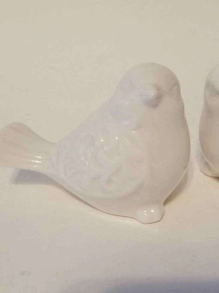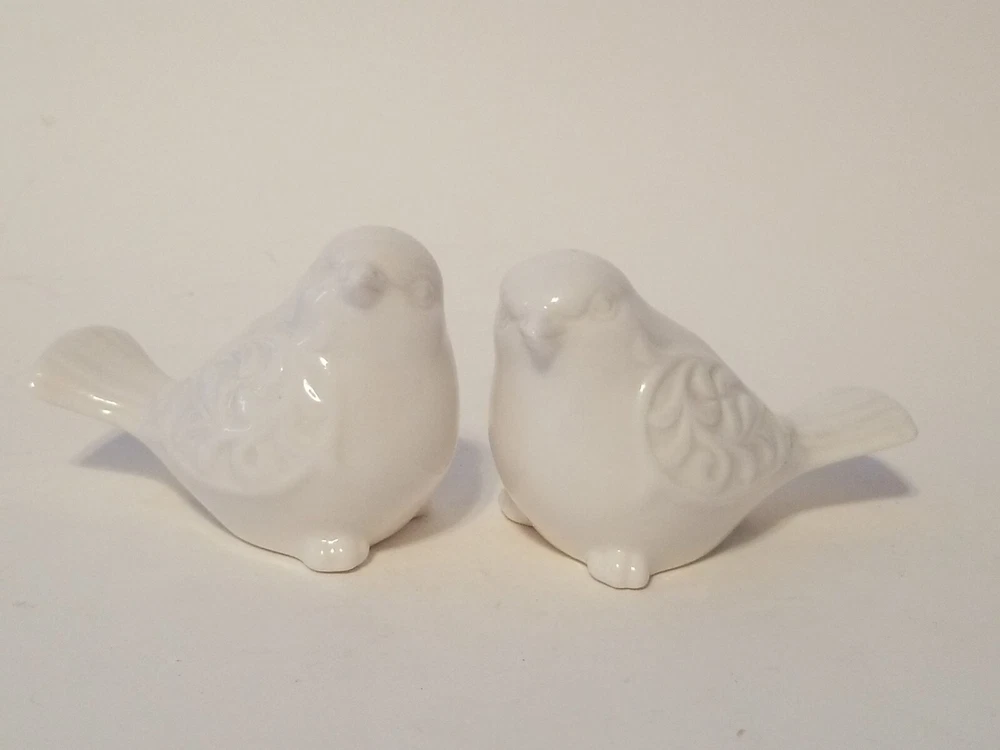 These ceramic salt and pepper shakers are adorable! The white scroll design with birds adds a charming touch to any table. They're in excellent condition and would make a perfect addition to your kitchen or as a gift. The seller is friendly and offers great deals—definitely worth checking out their other items too!